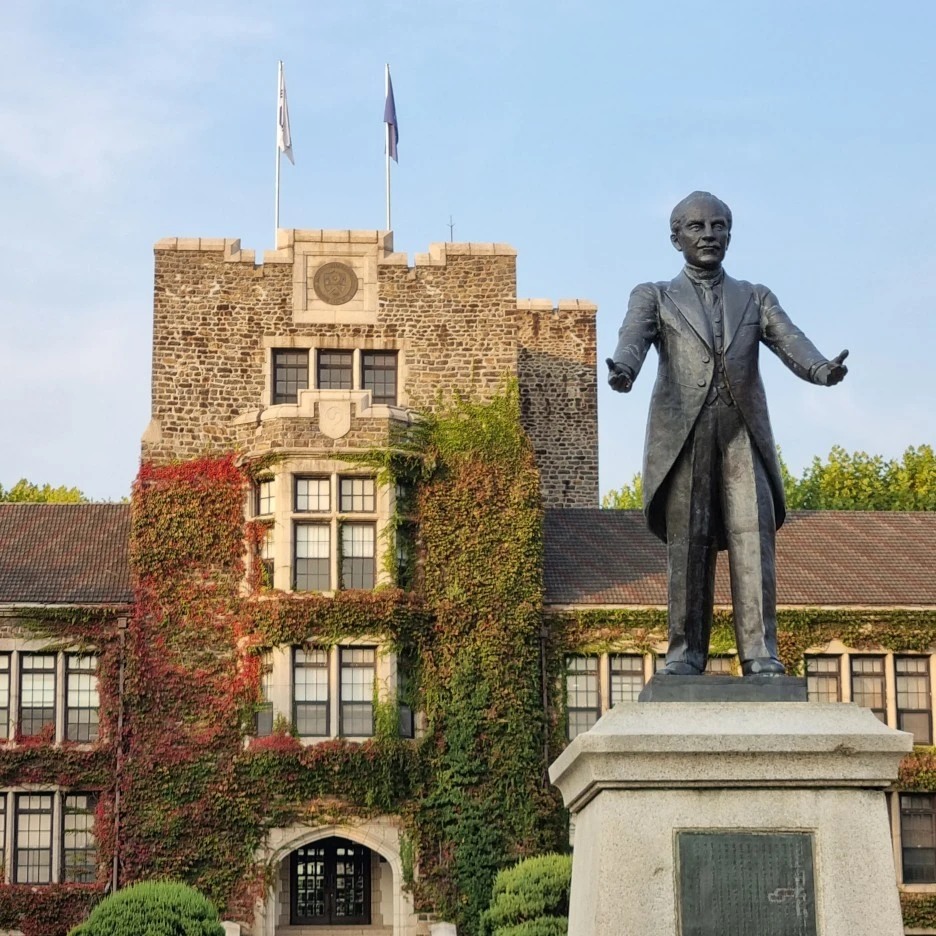 언더우드관과 언더우드 조각상과 기념비. 학생들이 현 교육 제도의 노예가 되는 걸 간절히 간곡히 바라지 않는다. 적어도 언더우드는 알았을까? 우리 대한민국이 점점 공부가 수단이 되어간다는 것을. 다시 이런 분이 환생하신다면 우리나라 기본 교육제도부터 싹 다 바꿔주시길 기대한다.