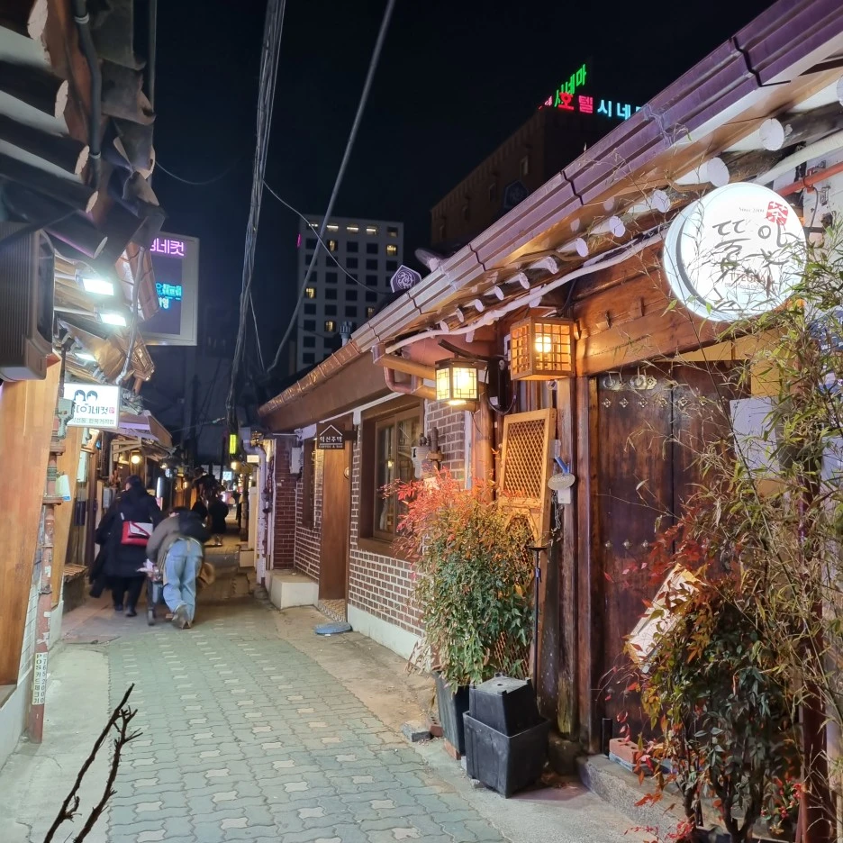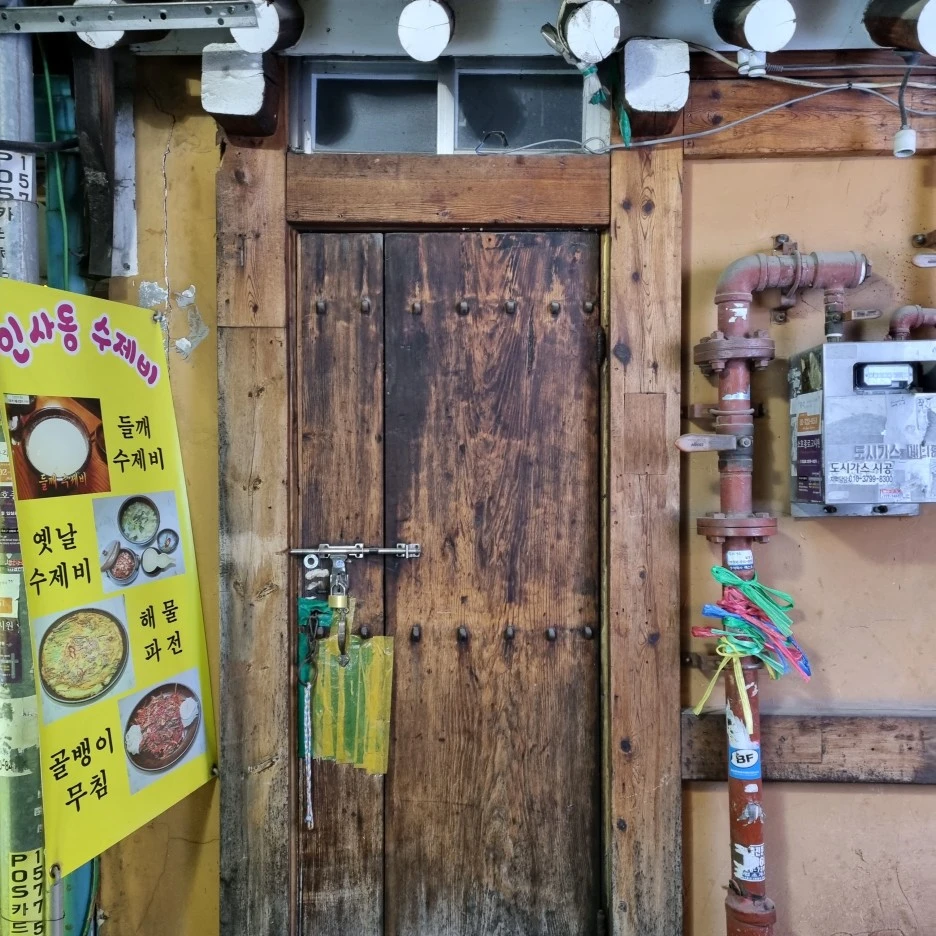 그렇게 우리는 인사동 골목을 곳곳 후벼 파기 시작했다. 예전에 인사동 쌈지길에서 공방 구경을 했던 기억이 난다. 그때 당시에 소상공인들이 제작한 저렴한 제품들이 즐비했던 풍경이 어느덧 뇌리 속을 스쳐 지나갔고 그 장소로 잠깐 고개를 돌렸지만 아쉽게도 문이 닫혀있었다. 그렇게 발걸음은 얼른 추운 몸을 따스하게 보호해 줄 식당으로 이동했지만, 내 시선만큼은 그 쌈지길로 돌아가고 말았다. 살짝 아쉬움을 뒤로한 채 하나 둘 눈 덮인 인사동 골목을 스텝 밟으면서 친구의 추천을 받아 좁디좁은 후미진 인사동 뒷골목으로 이동한다.