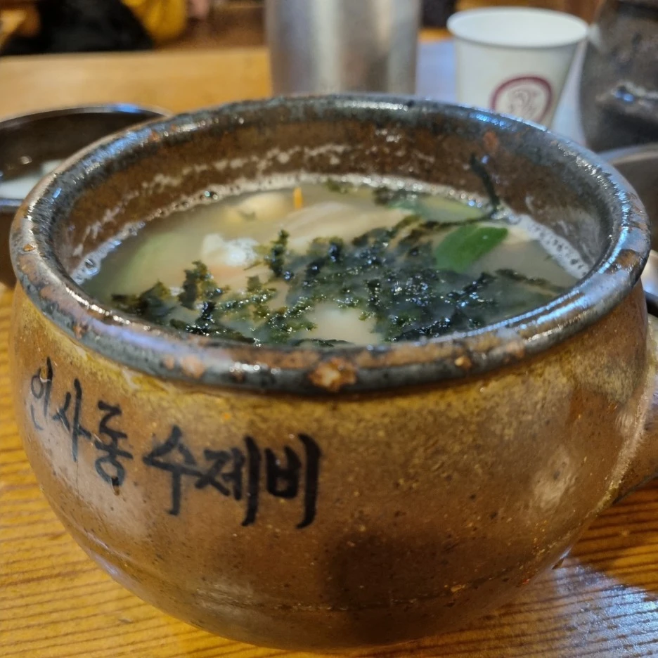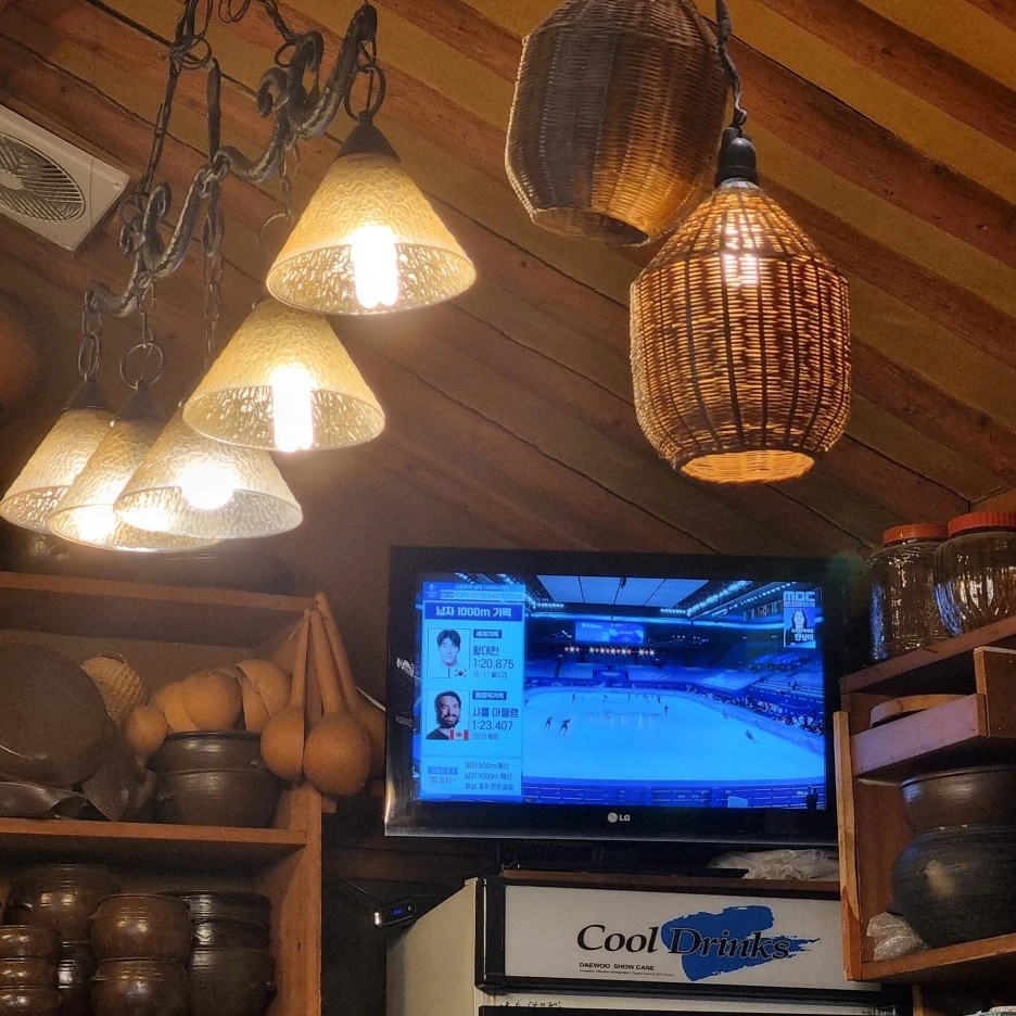 처음으로 왔던 곳인데, 외관부터 고즈넉한 풍경과 한옥 이미지, 그리고 성인 남자가 겨우 들어갈만한 장소였기에 매력에 이끌려 입장하였다. 그리고 사실 매우 추웠던 기억도 있었기에 얼른 들어가서 몸을 식히고 싶었다. 호호 입김을 불면서 자리에 착석하였고 7000원 인사동 수제비를 시켰다. 그리고 오른쪽을 돌려보니 벌써부터 베이징 올림픽 쇼트트랙 준비를 하고 있더라. 내가 예전부터 응원했던 '황대헌' 국가대표 선수가 입장할 시간이었다. 시간은 대략 오후 8시였나. 가물가물했지만 타이밍이 좋았다는 명분으로 우리는 일 이야기는 잠깐 접어두고 티비에 더욱 열중하였다.