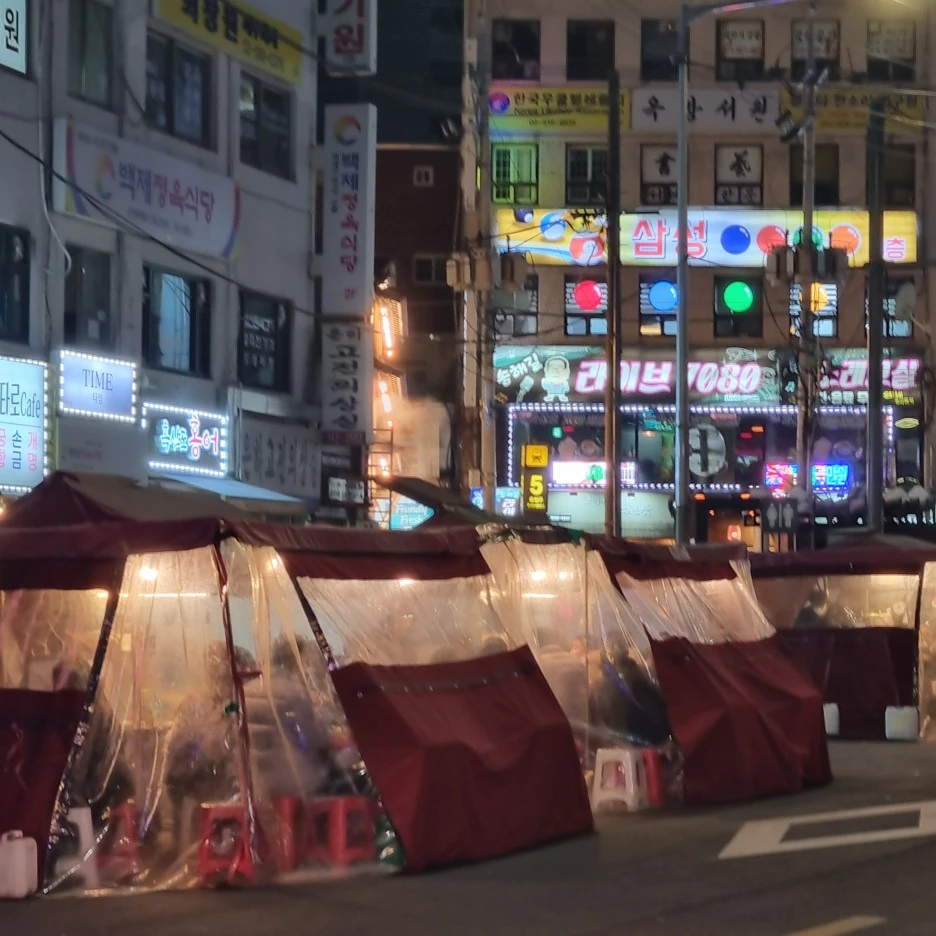 인근 노포 여전하구나. 노상 포장마차는 개인 사업이라 그런지 영업시간의 여부를 딱히 받지 않는 듯하였다. 인근 술집에서는 자연스럽게 코로나로 인해 영업 제한을 받다 보니 대부분 소소한 회식을 위해 이 노포에 몰린 사람들이 많았다. 그리고 시끄러움은 덤.