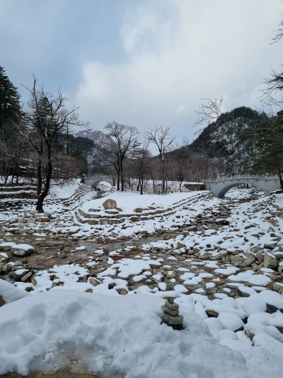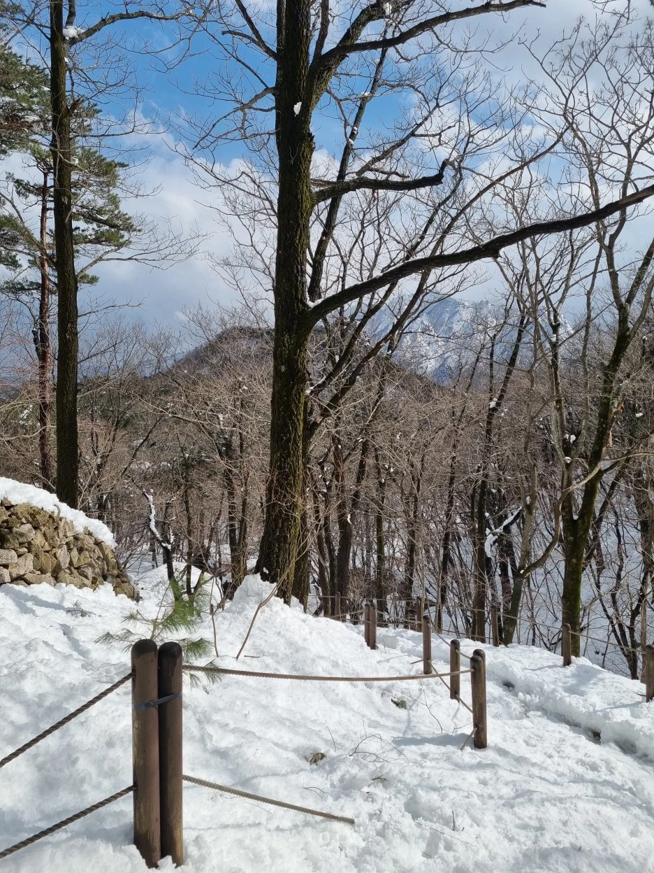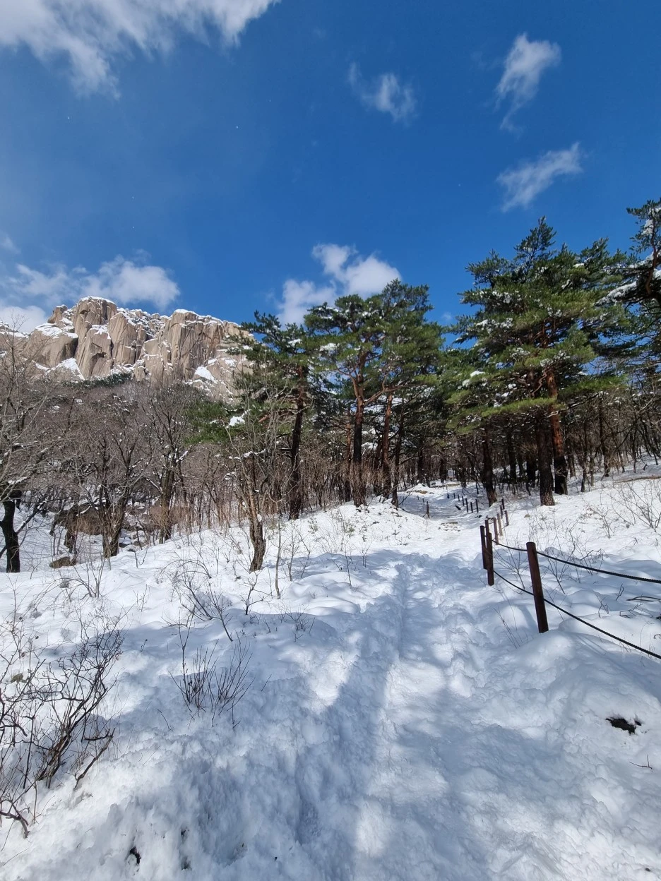 생각보다 눈이 깊게 쌓여있었다. 한 발짝 두 발짝 올라갈 때마다 운동복 복 빈틈 사이로 눈망울이 하나하나 흡수되기 시작했다. 무릎이 서서히 시리기 시작했지만 이내 포기하지 않았다. 언제 내가 또 이 설악산 자락이라도 와 볼 것인지 나도 잘 알고 있었지. 적어도 후회가 없다면 정말 잘한 일이 아닐까 한다.
