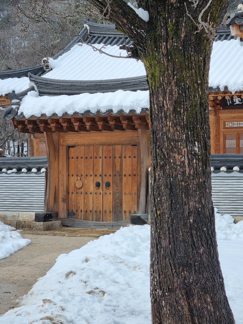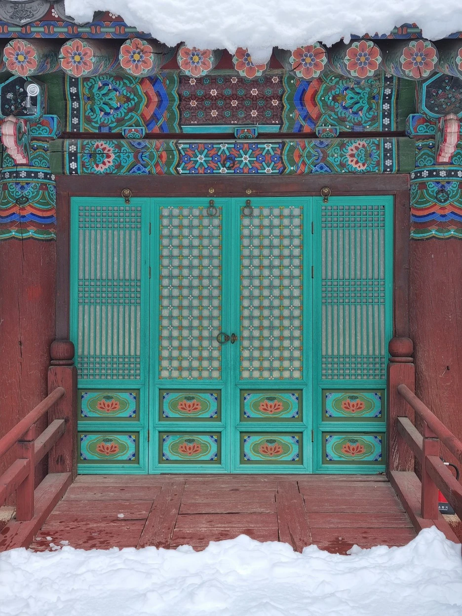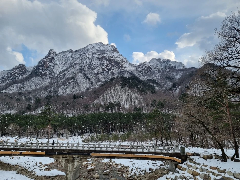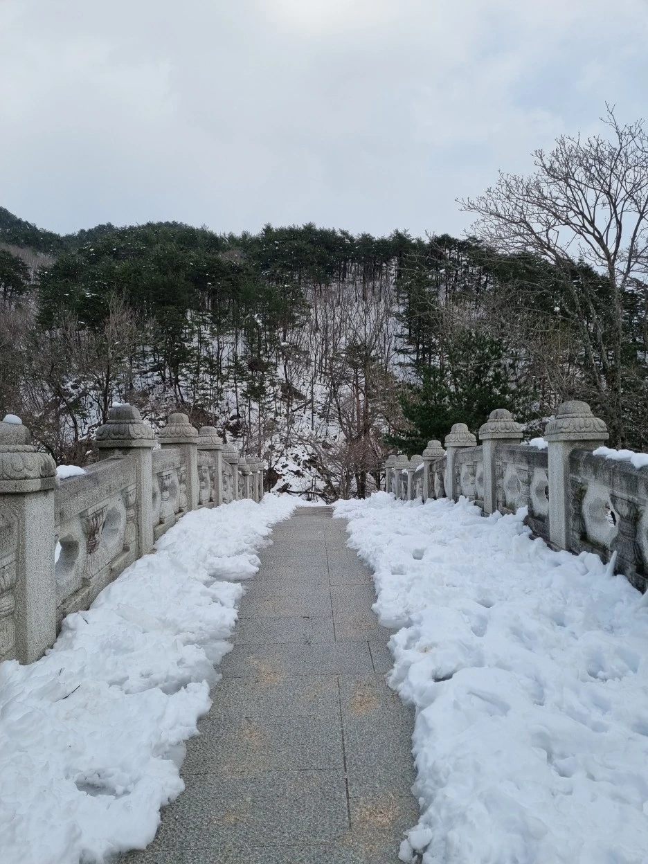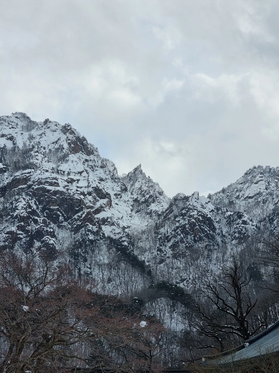 난 신발을 잠깐 마룻바닥 아래 큰 기단에 살포시 벗어놓고 마루 위에 앉아 눈 내린 설악산 자락 풍경을 구경하기 시작했다. 생각보다 고요했고 그저 어느 참나무 위에서 지저귀는 파랑새의 목소리가 저 멀리 들리기 시작했다. 외국인 친구들이 나에게 사진을 찍어주겠다며 칭찬 섞인 활기참을 드러내었다. 나도 그 기분에 덩달아 유튜브에 올릴 것이냐면서 장난 섞인 말을 했지만 그렇게 하겠다면서 자부했더라. 알고 보니 그 친구들 중 한 명은 유튜버 크리에이터였다. 나에게 구독해달라며 미소 머금은 표정을 짓더니 이내 울산바위로 향해 이동하던 그 친구들이 아직도 기억난다.