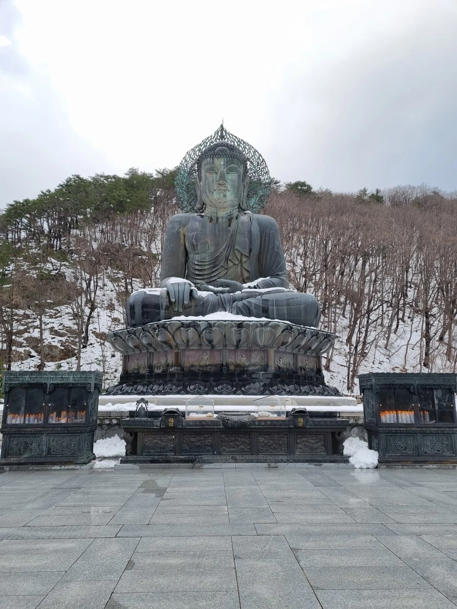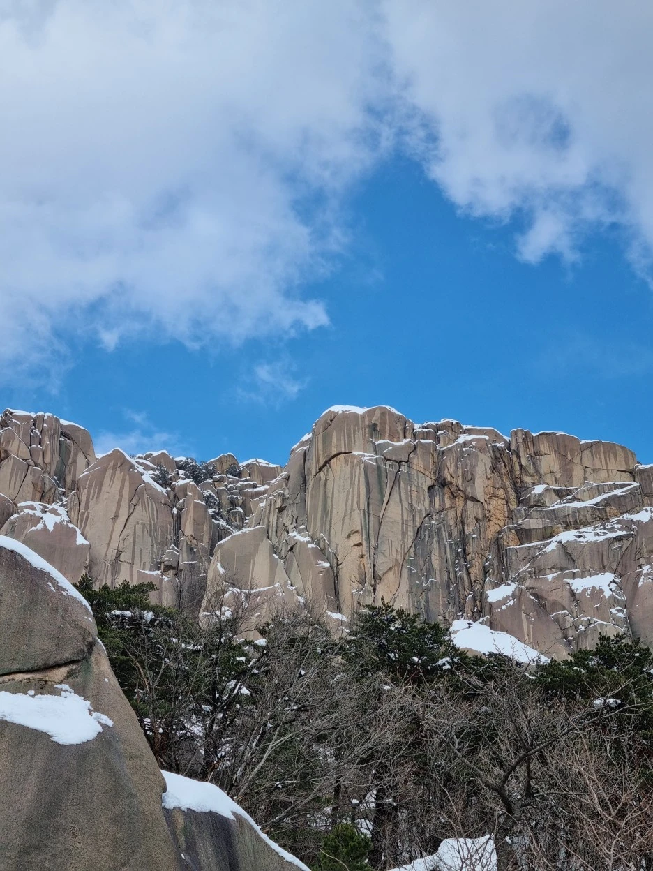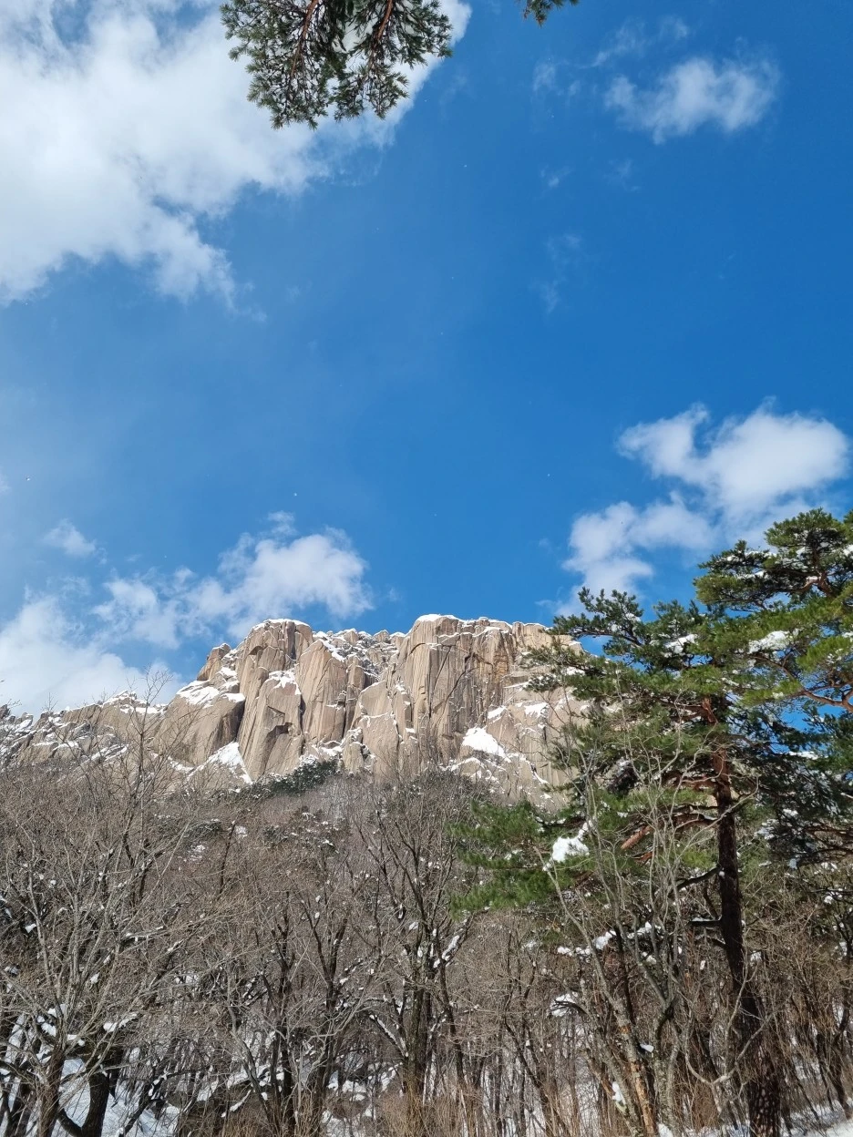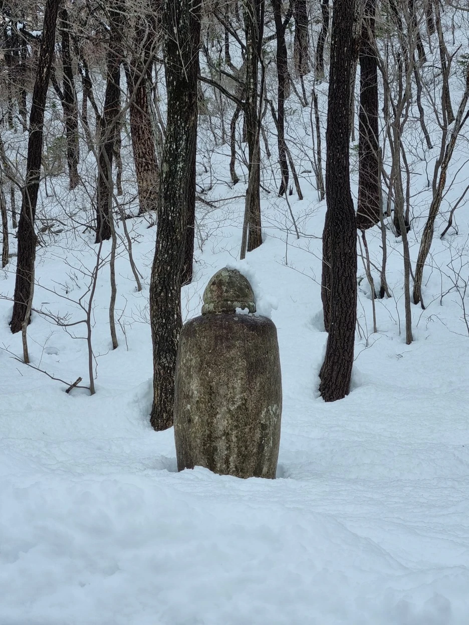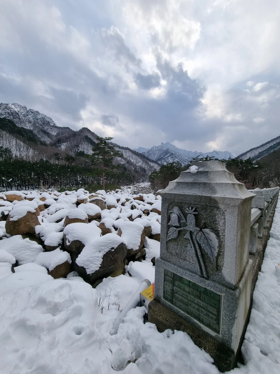 이윽고 내원암 스님께서 주신 초코바를 입에 물었다. 감미로운 초콜릿 열량이 나의 몸속으로 퍼지기 시작했다. 뜻깊었던 사색의 시간과 사유의 감정은 그때 비로소 발현되었다. 마스크를 잠깐 벗어던지고 관광객들이 없는 틈을 타서 소복이 눈이 쌓인 바위 침대 위에 누워보았다. 10분 정도 있었는데 등이 굉장히 시린 거 외에는 별도의 짜증남이 없었다. 자연과 한 몸이 되었다는 생각이 머릿속을 맴돌았고 난 5분 정도 더 누워버렸다.