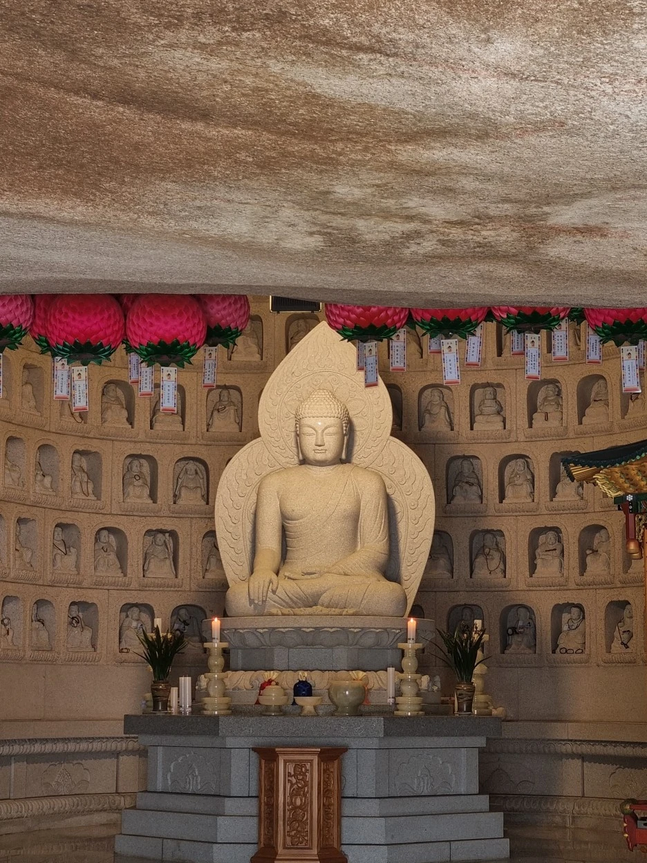 계조암 석굴이라고 한다. 신라시대 자장율사가 건립했다고 한다. 웅장한 석가모니가 예술이었다. 목탁 두들기는 소리도 덤이었다.