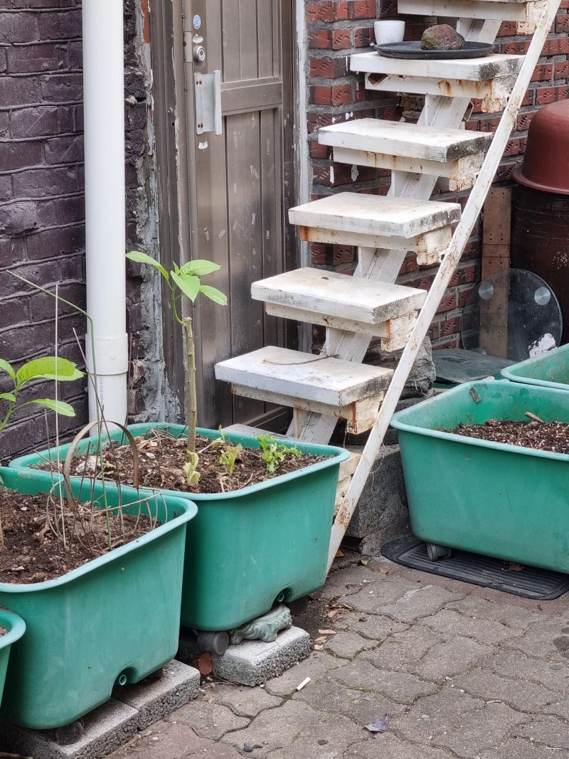 때로는 실외 화분 조성이 보는이로 하여금 친환경적 성향을 가지도록 동기부여를 준답니다. 실천해보세요.