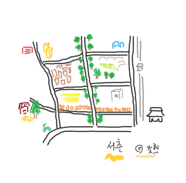완벽히 일치하지 않은 나만의 서촌 대동여지도 같지만 잘 살펴보면 곳곳에 보이는 풍경을 잠시나마 구경할 수 있다.
