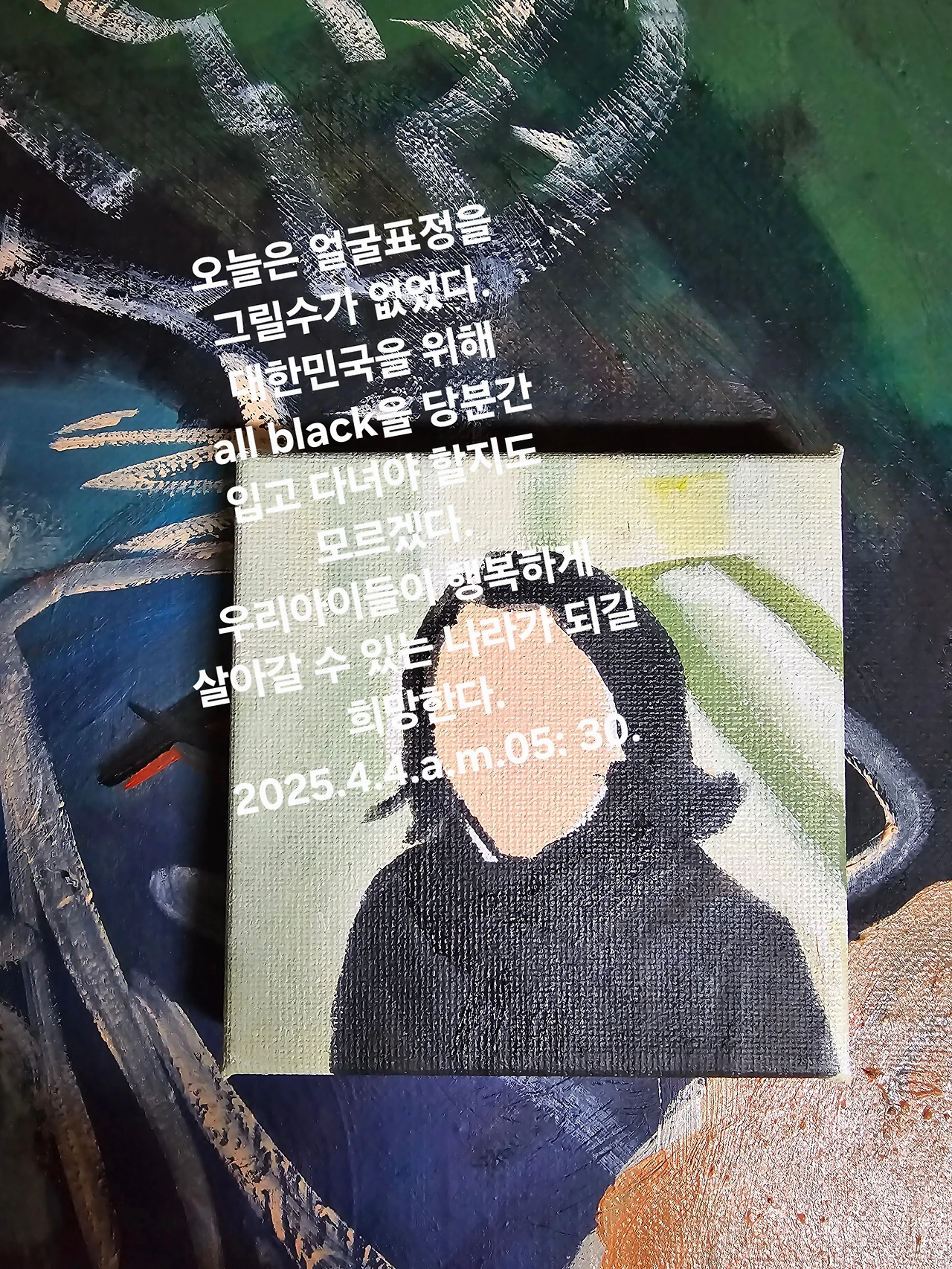 나도 오늘은 작업을 하면서 나의 얼굴표정은 그려넣을 수가 없었다. 희망의 대한민국. 젊은이들이 행복한 삶을 살아갈 수 있는 터전을 마련해주는 대한민국이 되길 희망한다.