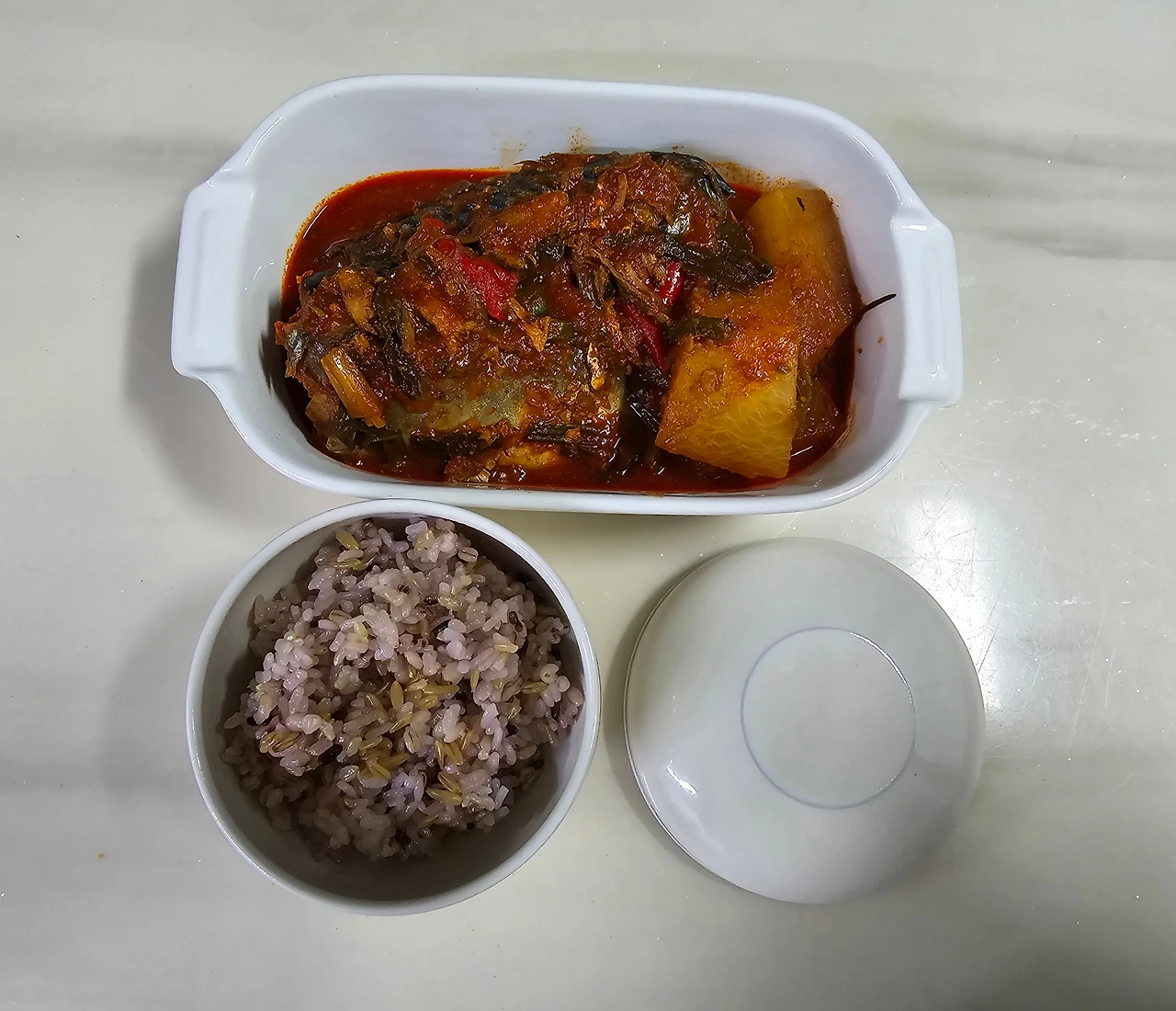 어린시절 고등어를 좋아하는 고집쟁이 둘째딸에게 만들어준 친정엄마의 걸쭉한 고등어 조림을 만들어 오늘 아침식사로 준비해 나에게 바쳤다.