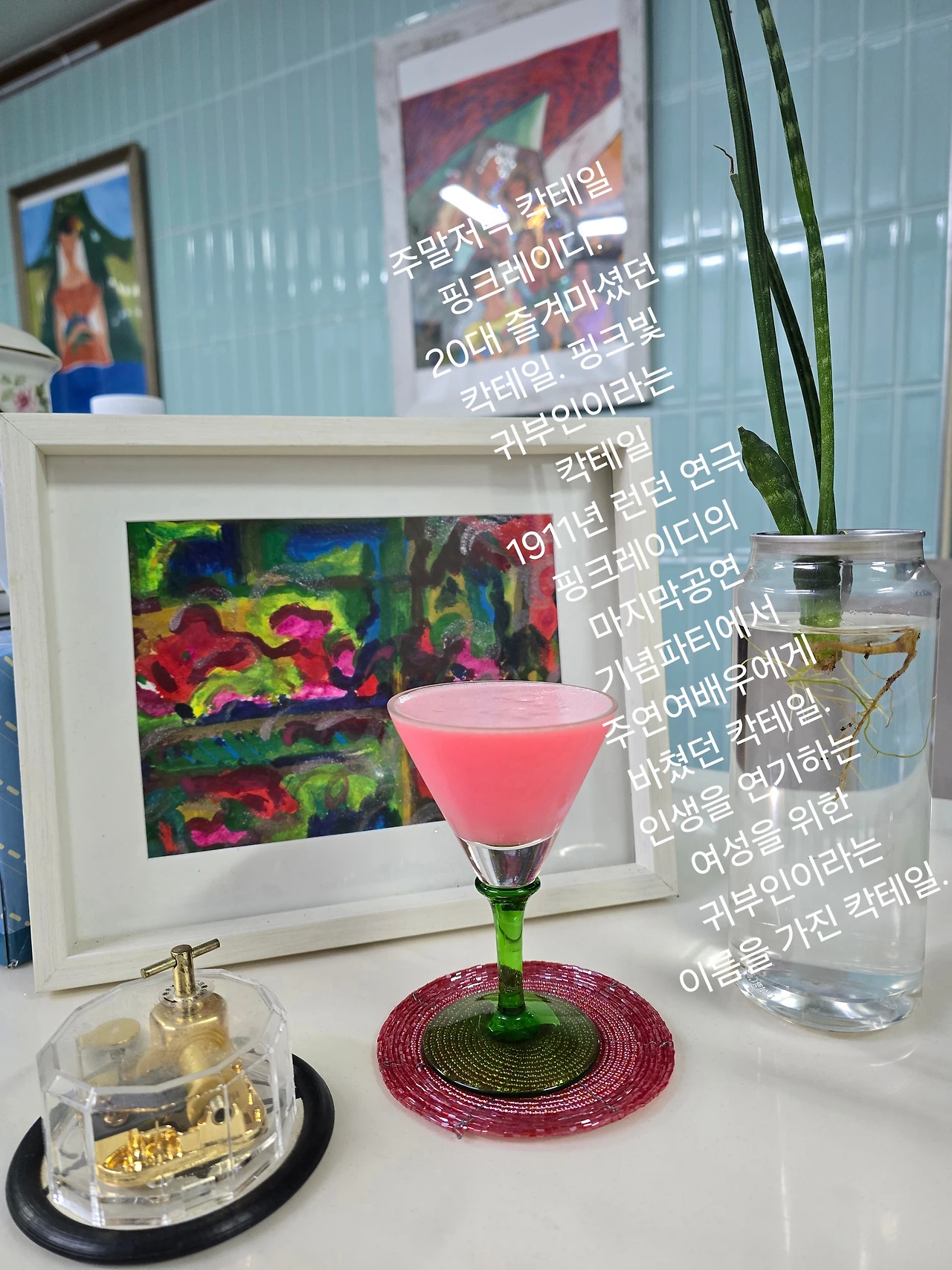 20대때 즐겨마셨던 칵테일 핑크레이디를 지금 내가 직접만들어 마시는 이기분 참 좋다.