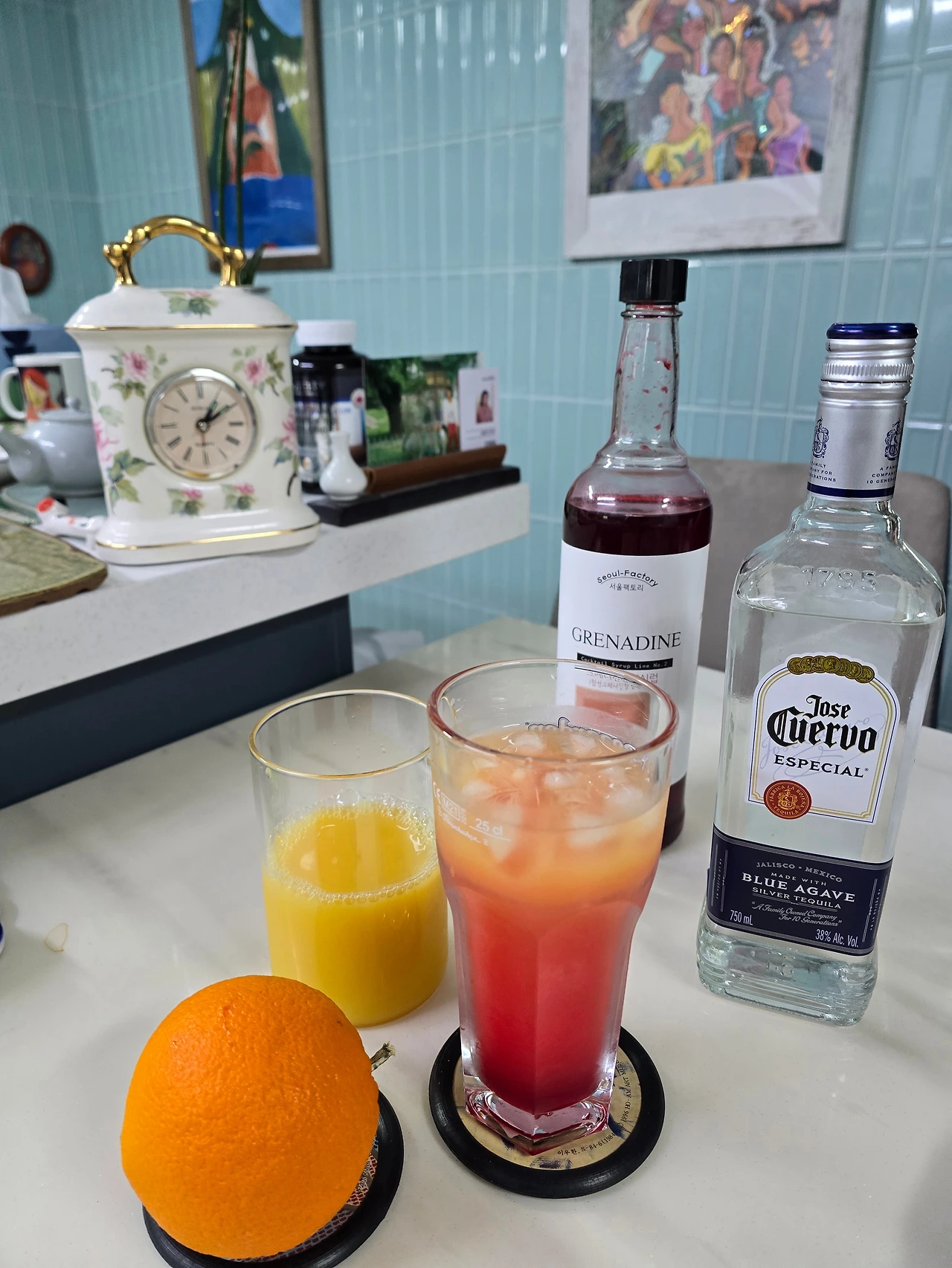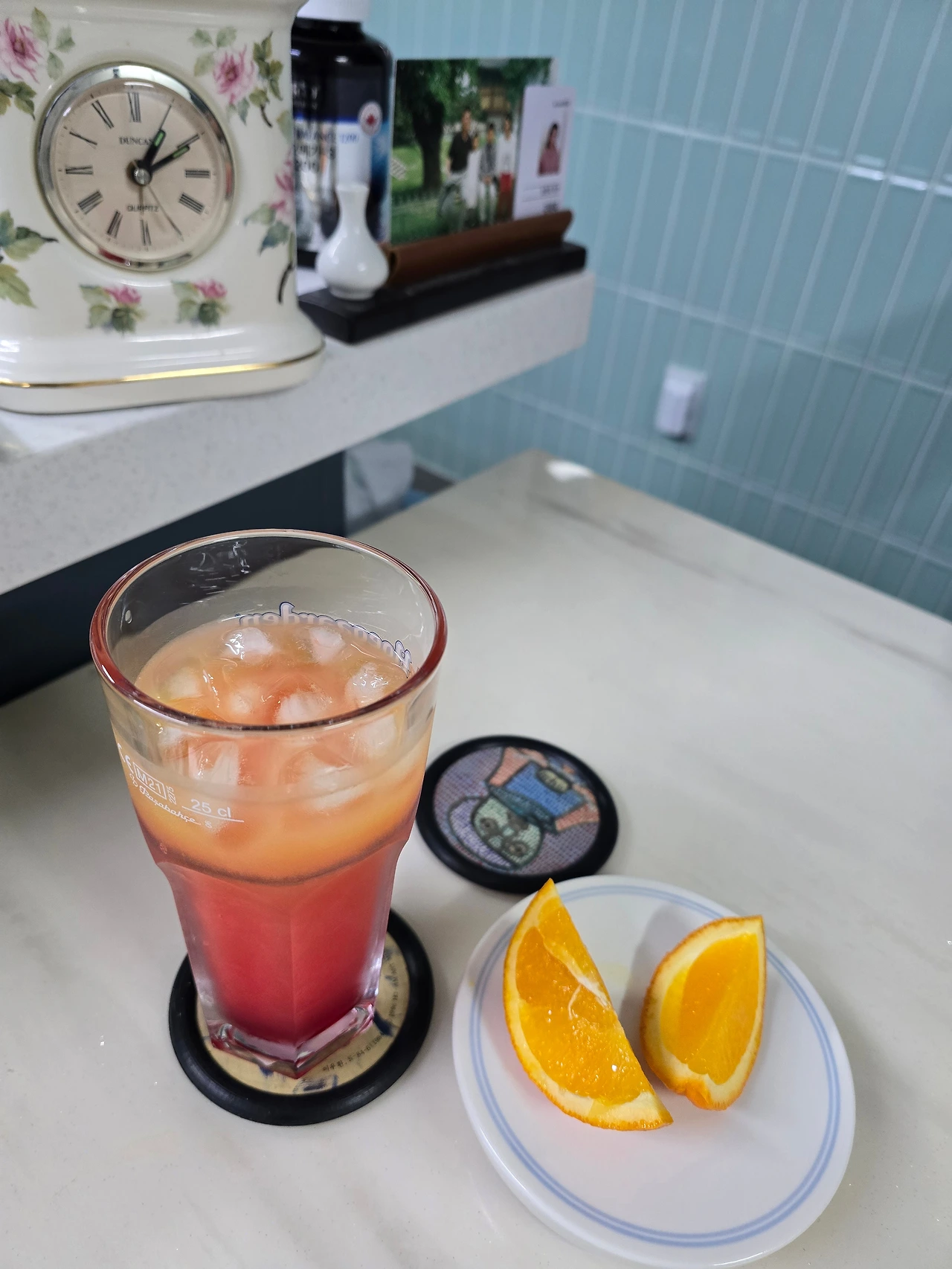 점심때 칵테일 데낄라 썬라이즈를 만들어 마셨다.