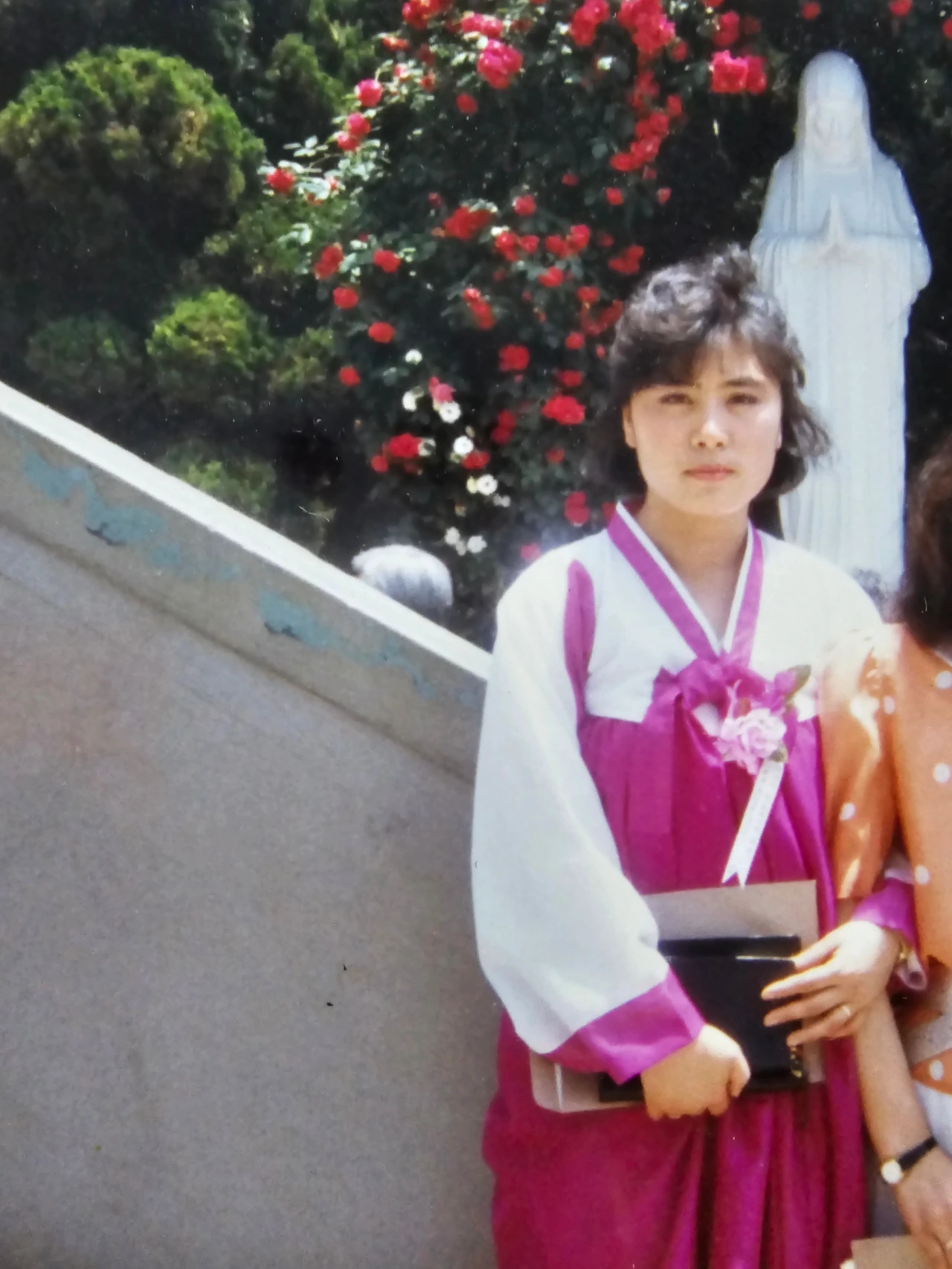 사진안에는 첫영성체를 받았던 세례를 받은날. 기념사진이였다.