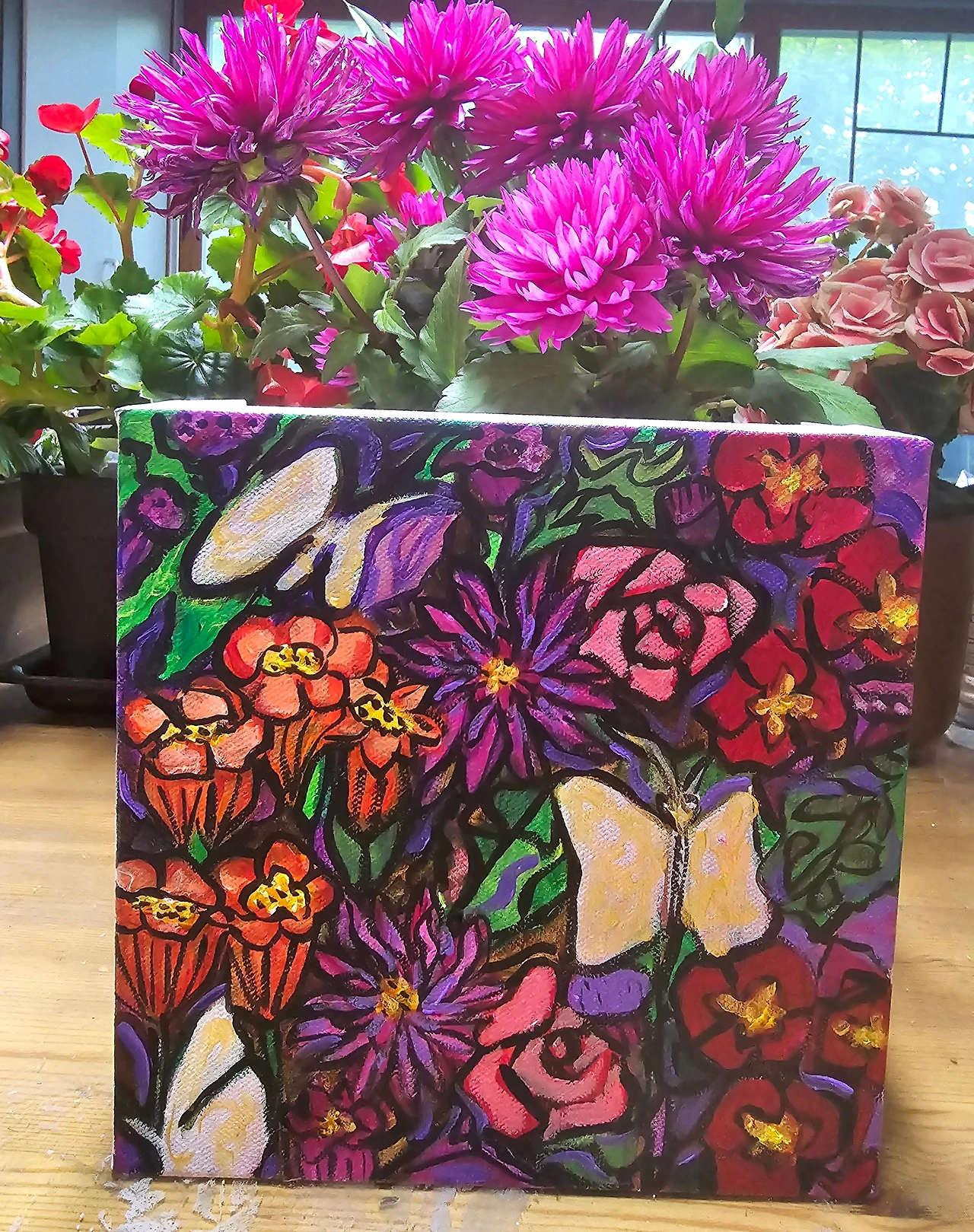 다알리아 그림이 있는 나비와꽃을 작업하고,
