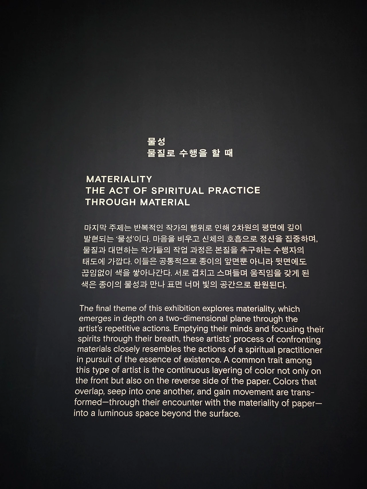 이번전시는. 이러한 회화 특유의 성격이 될 수 있는 풍경,색채, 물성의 개념을 토대로하,'모습,정경,그리고 자연'.'색은 살아 움직인다''물질로 수행할때'라는 세개의 큰 주제로 구성된다.