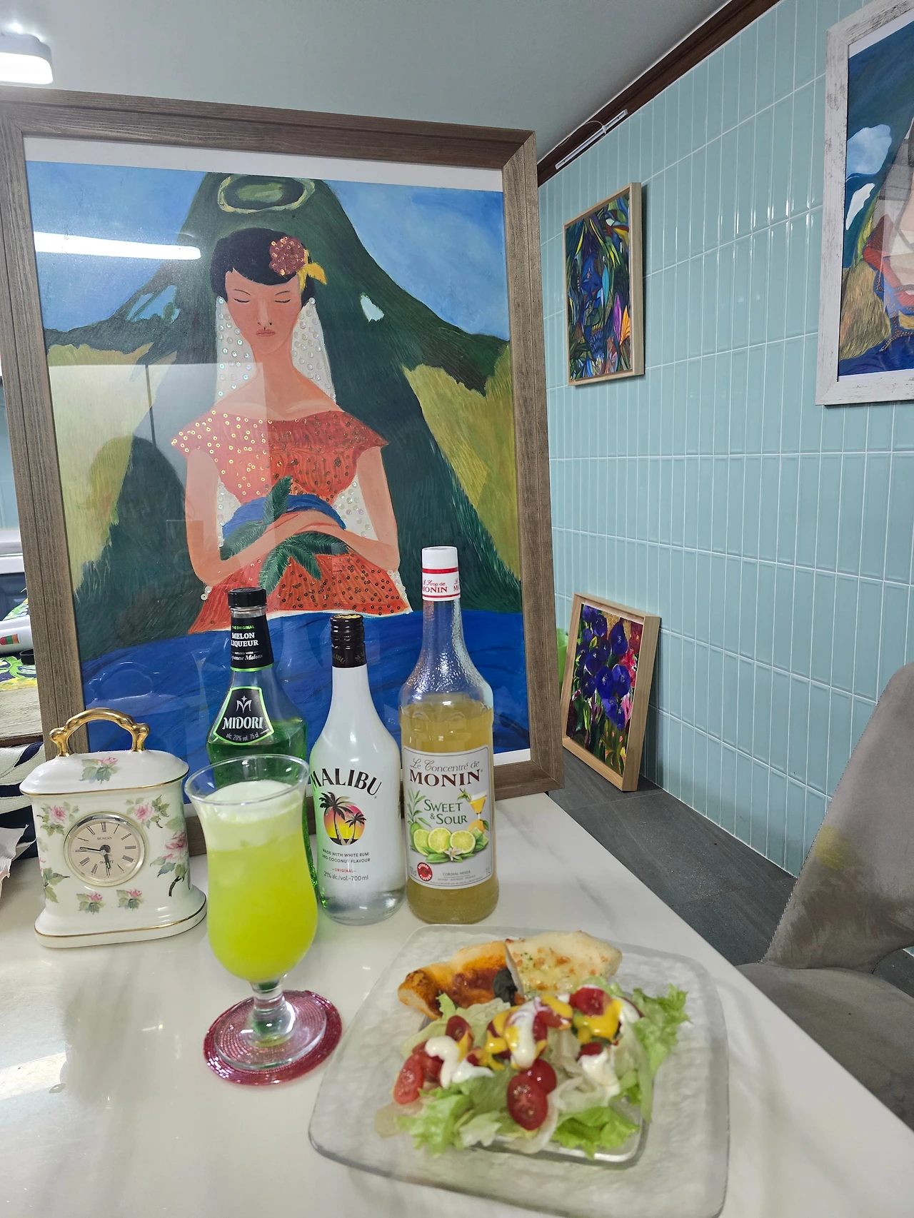 상큼한 샐러드와 수제 피자를 만들어 안주를 만들고 준벅한잔을~