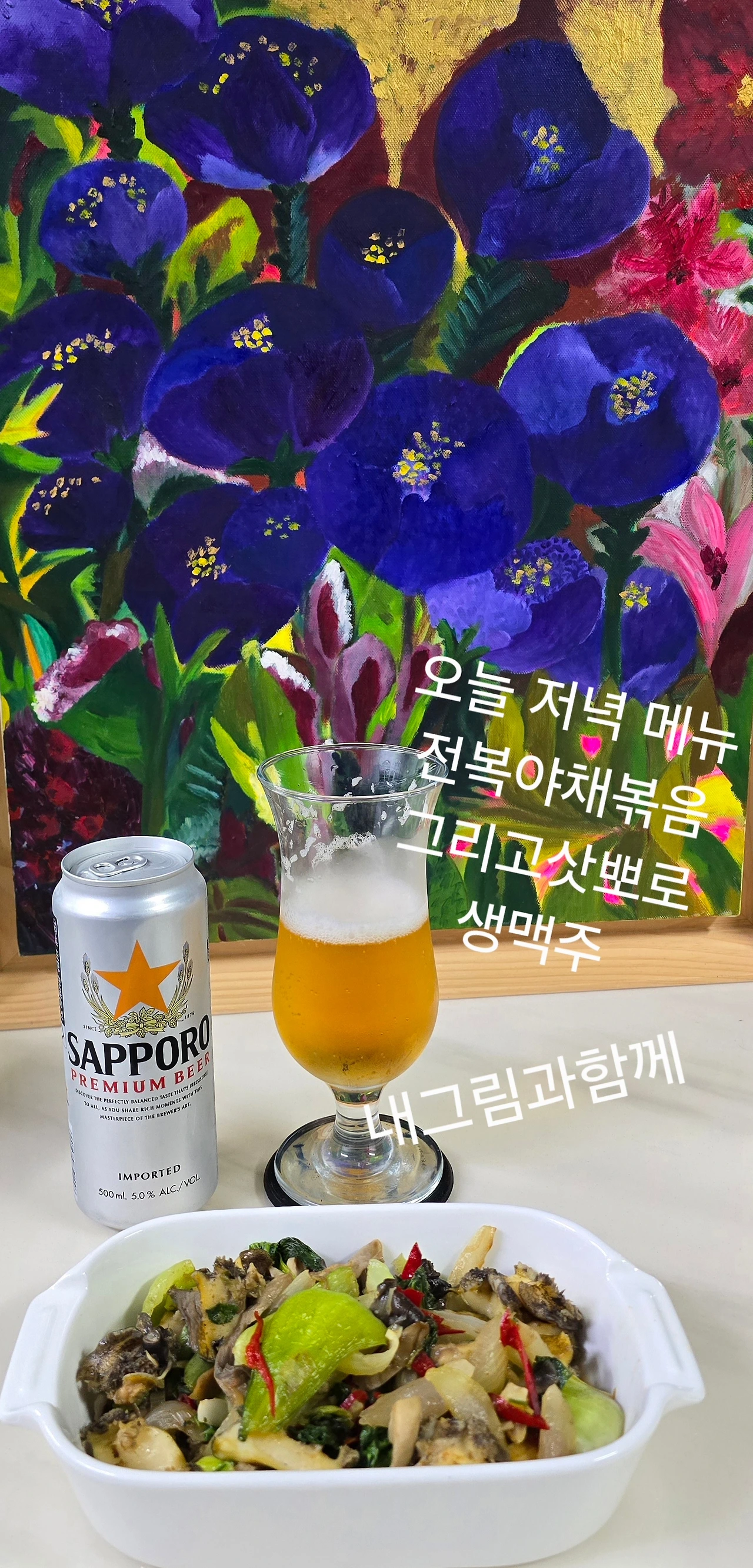 전복야채볶음과 삿뽀로생맥한잔