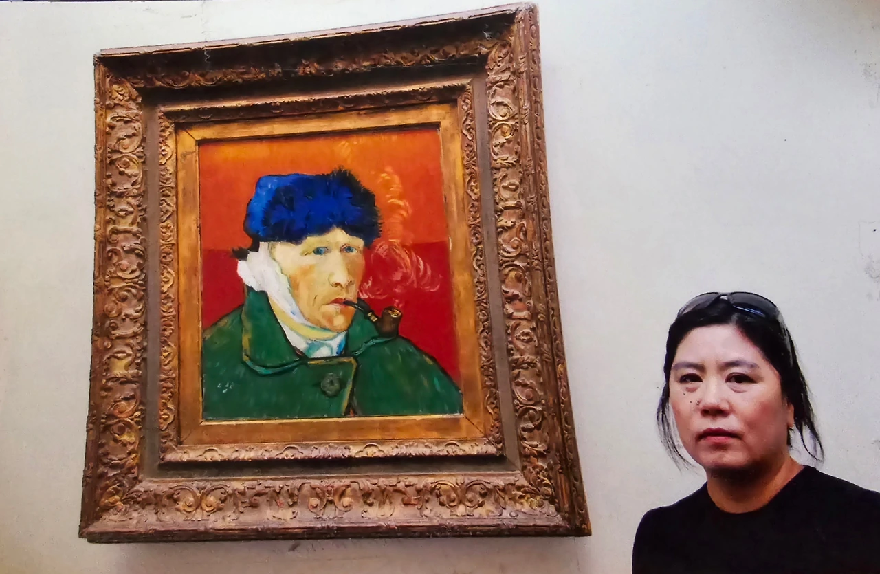 외출을 위해 산책을 하고 집으로 들어섰다. 순간 휘리릭 내앞에 전해진 사진은 내가 좋아하는 붉은색배경에 그린 컬러 그리고 파이프에 지금 내앞에서 담배를 피우고 있다는걸 의식할 수 있는 담배연기의 라인이 있는 고호의 자화상.