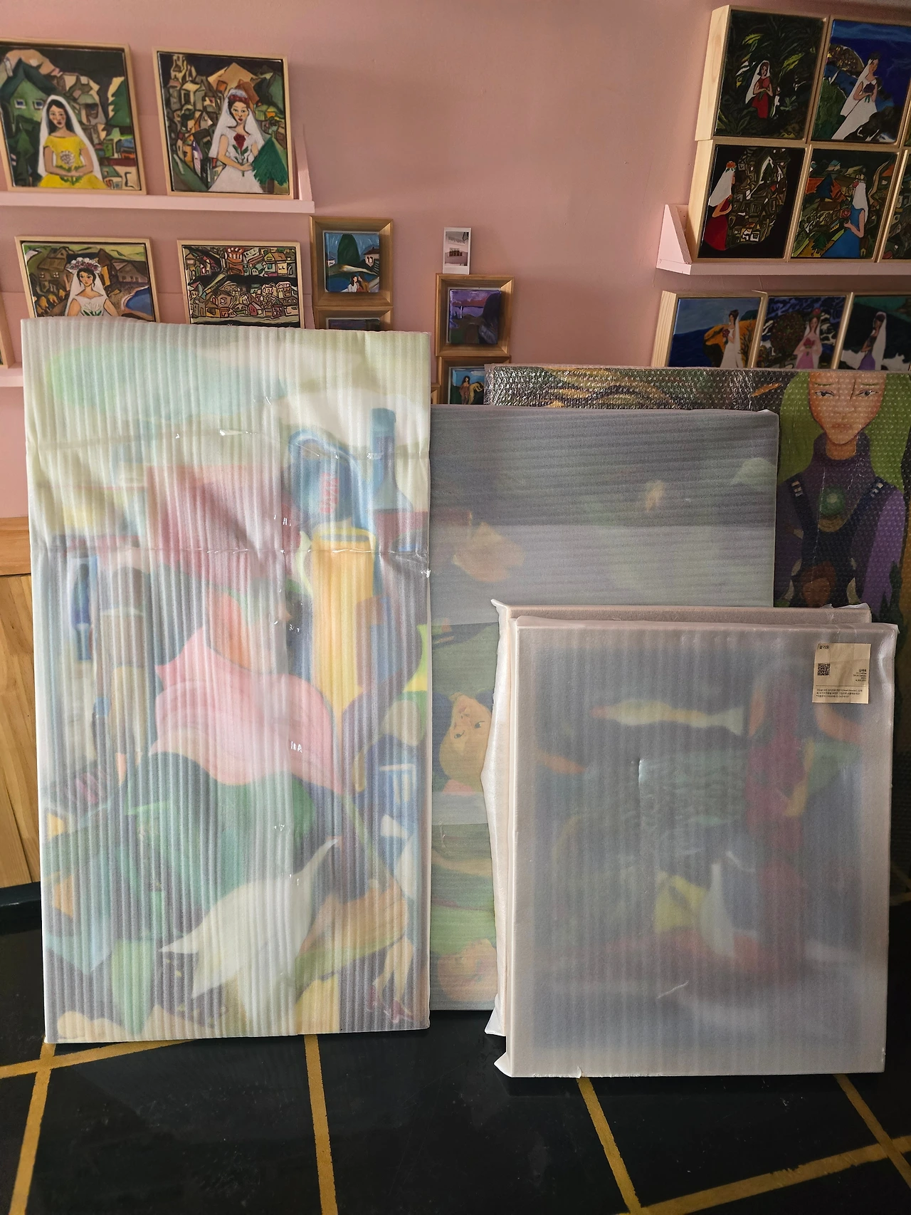 혼자 큰작품을 포장하면서