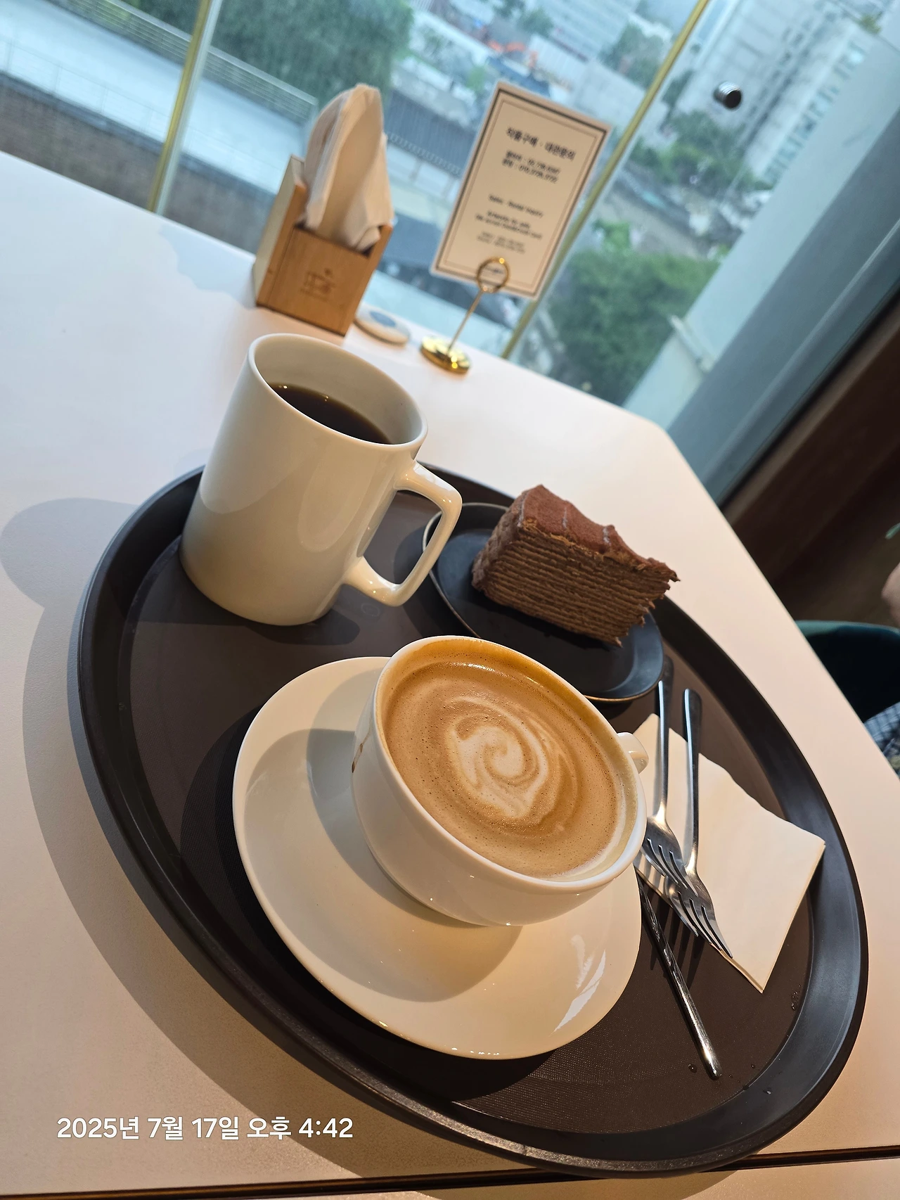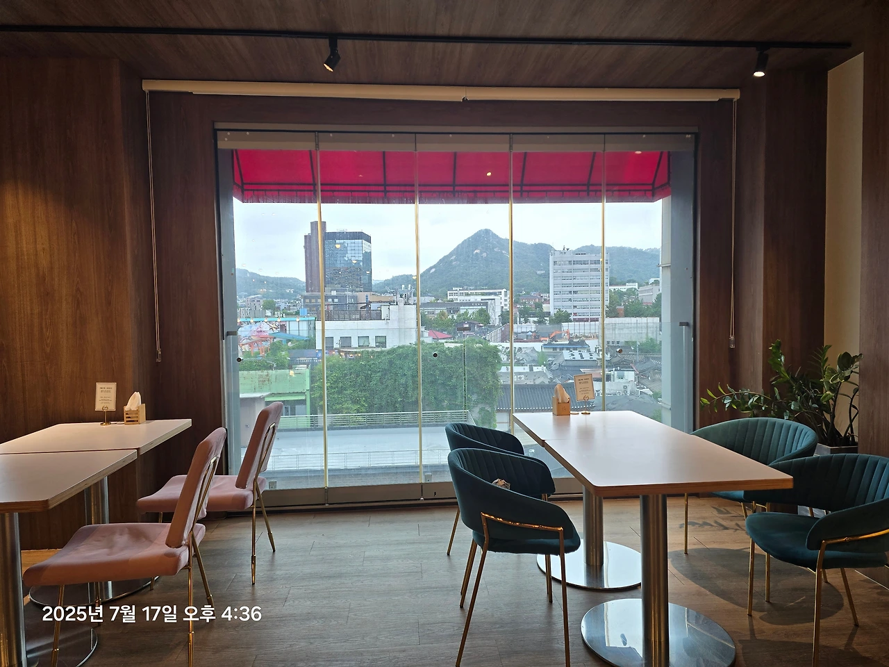 앞서 전시를 보고나온 그곳에 르프랑이라는 청와대 끝자락이 살짝보인다는 전망이 좋은 카페였다.