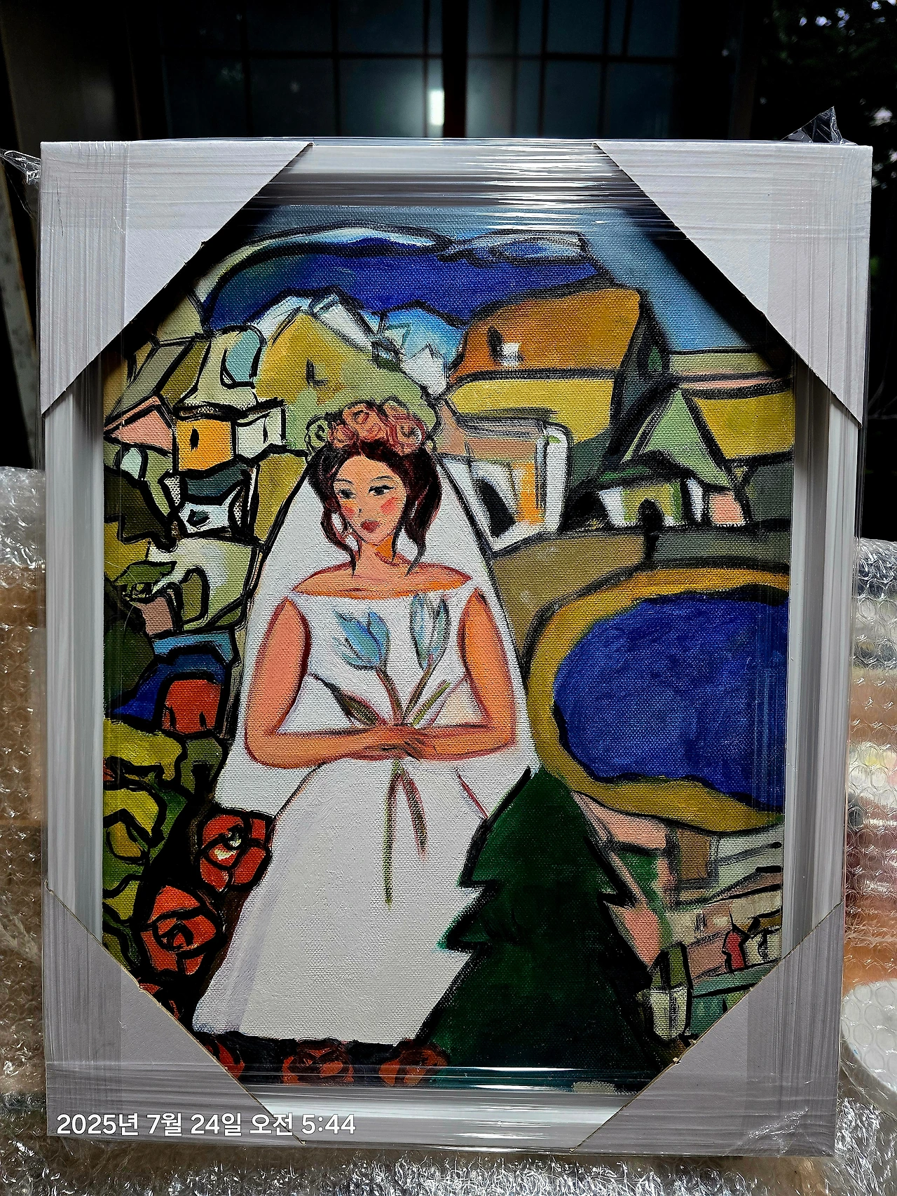 액자속에서 신부의 모습을 완성시켜보려는 그 배짱은 어디서 나오는걸까?