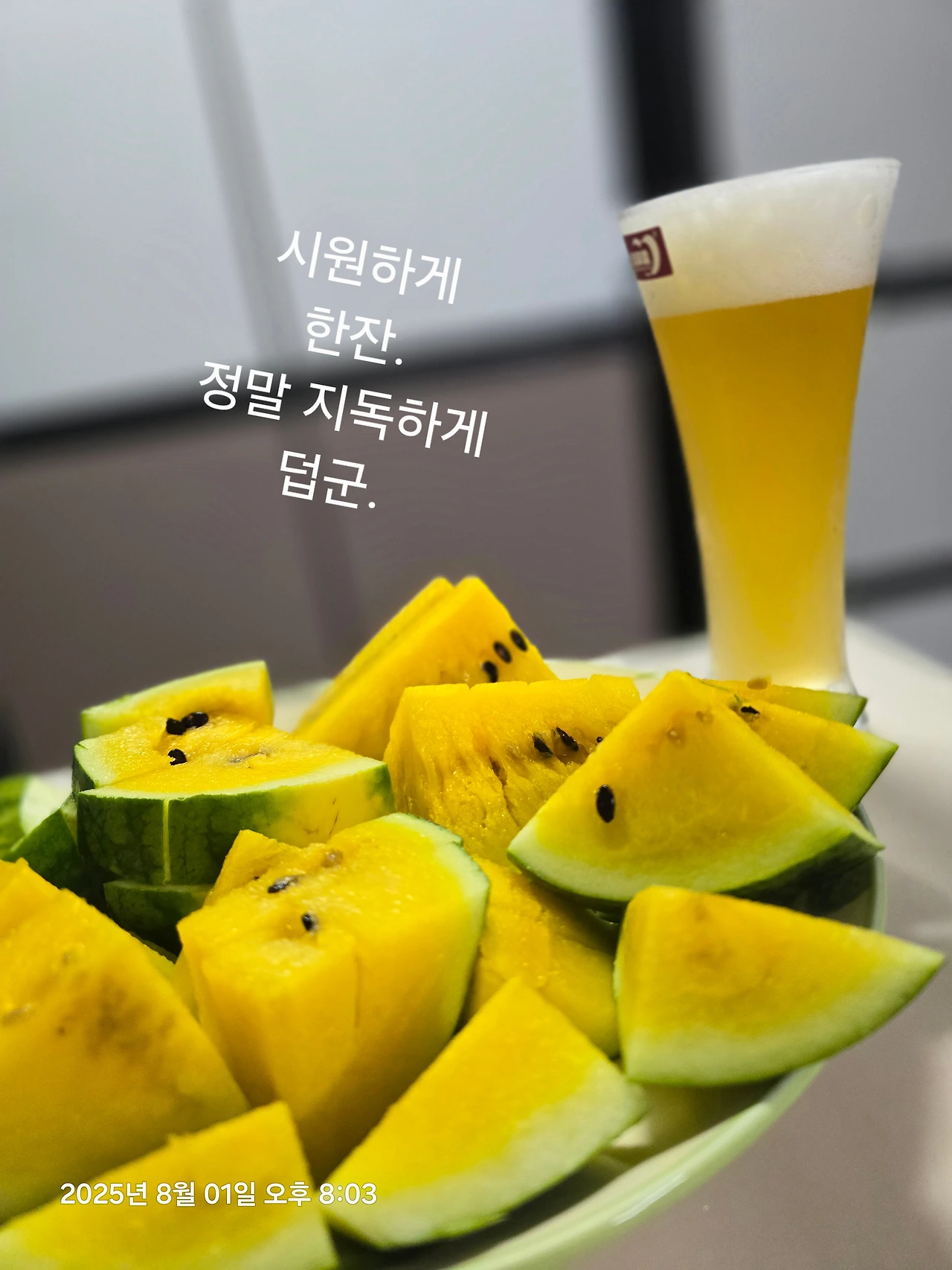 노동을 하고 흐르는 땀을 뒤로 한상차림에 노오란 망고수박에. 칭따오 맥주를 한두잔 들이키니 식욕과함께 다시 생기가 도는듯 했다.