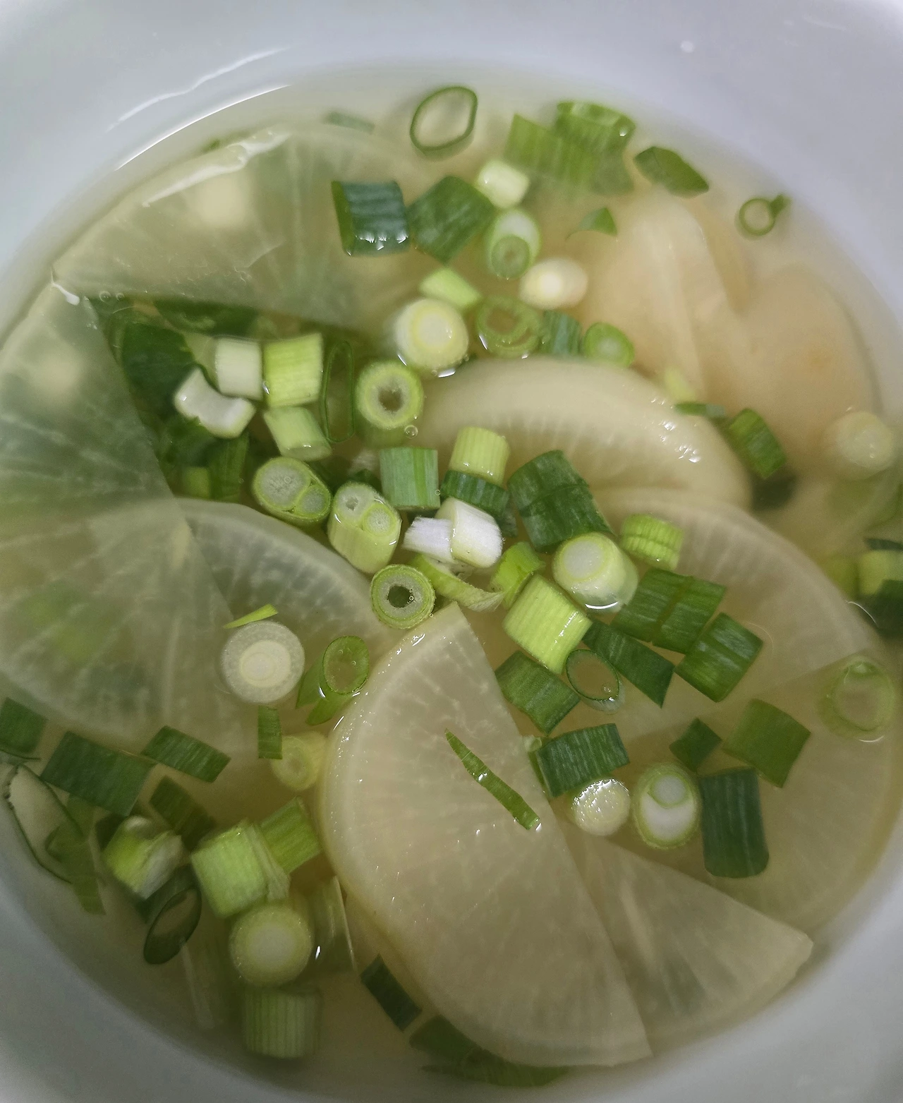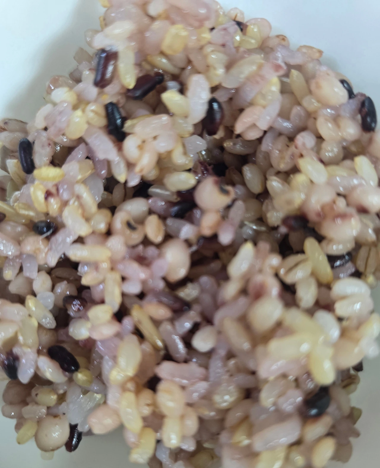 가지와당근볶음, 잡곡밥,시원한 무짠지물에 새콤한식초로 맛을내고