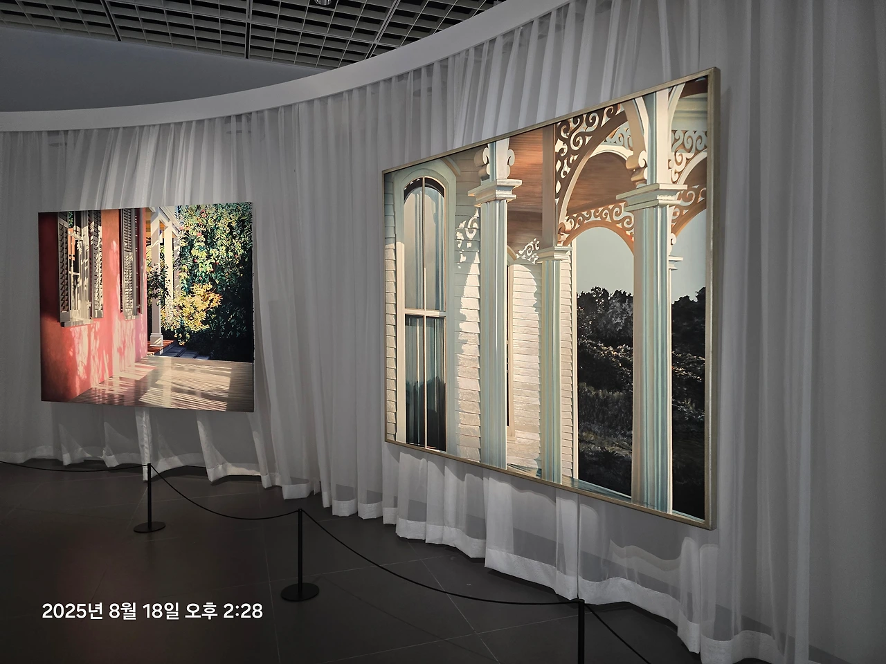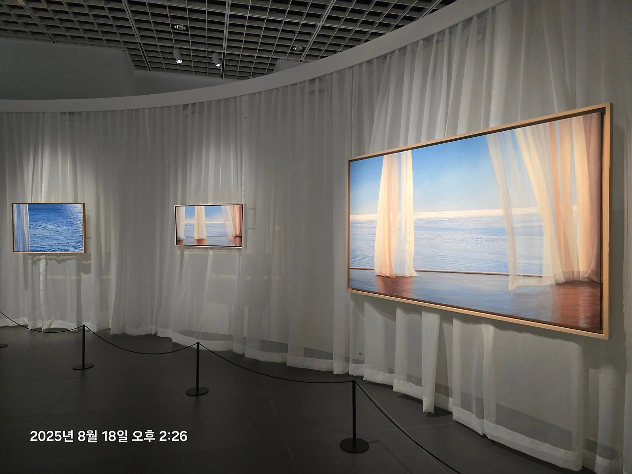 그리고 커튼배경으로 걸려진 작가의 작품이 신선했다.