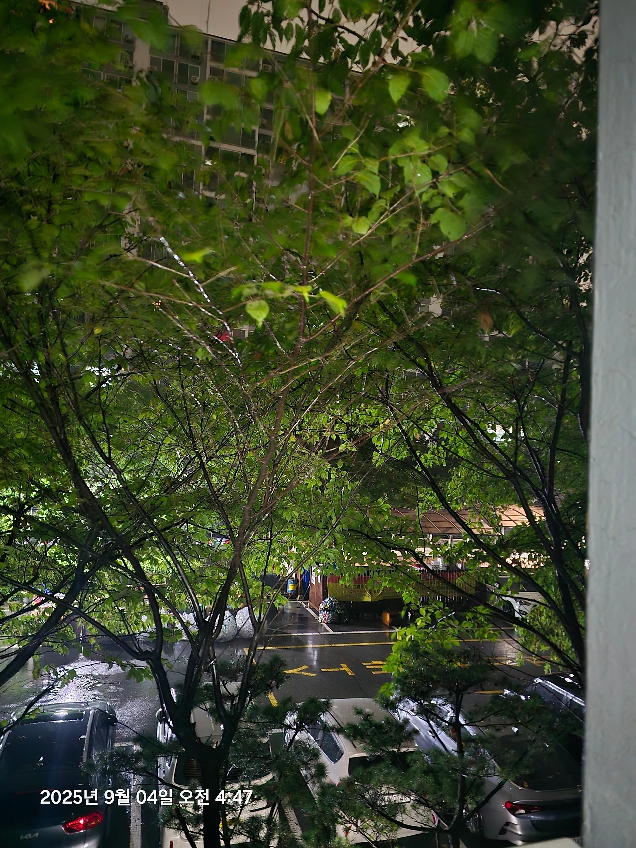 지금도 시원하게 마치 폭포수처럼 내리는 빗소리.