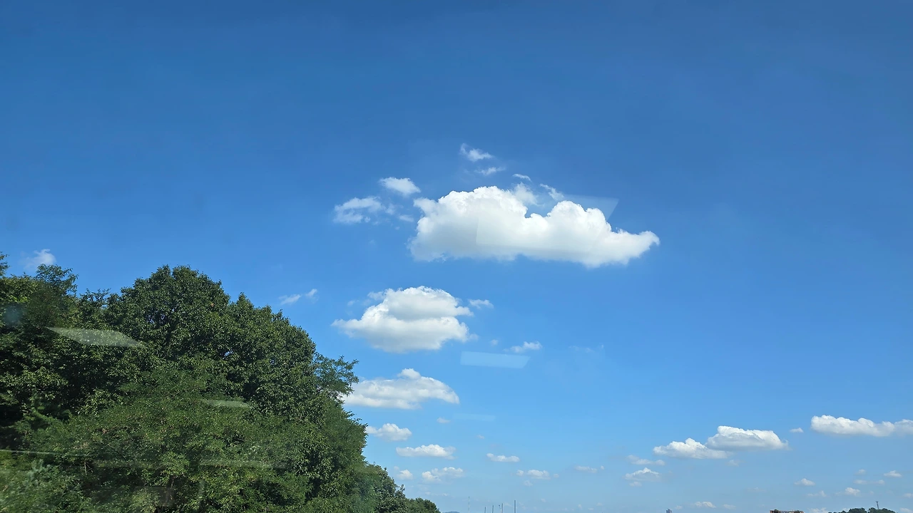 파란 하늘에 뭉게뭉게 피어있는 하얀구름은 우리가 손에 크레파스를 쥐어주고 그려보라면 바로 저런 풍경을 그릴것같은. 그 하늘을 나는 지금 보고있다.