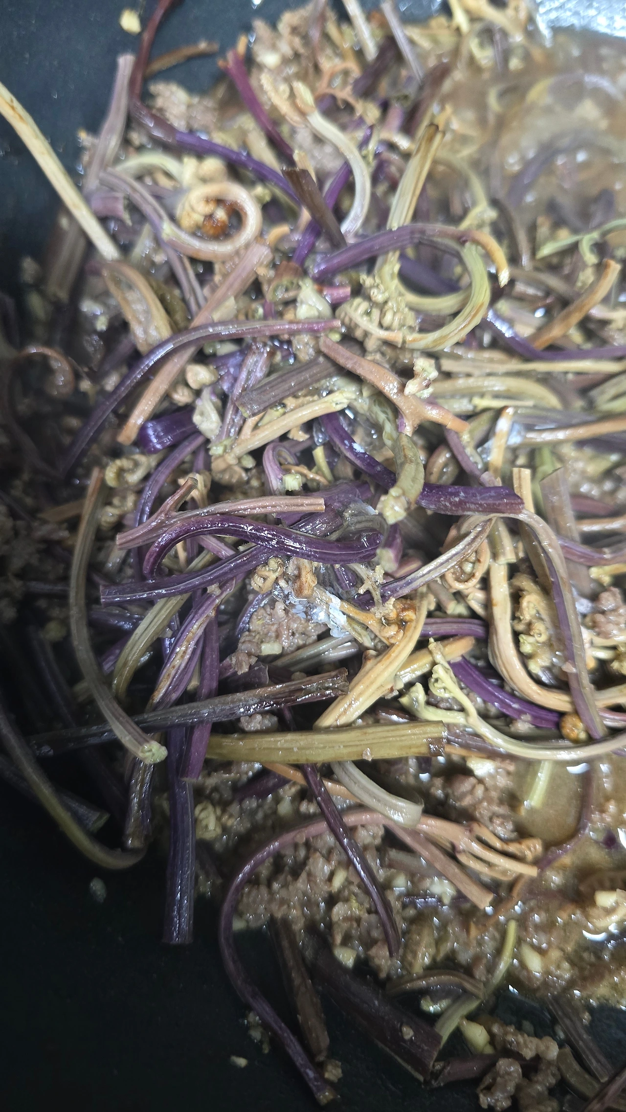 하지만 살얼음에 얼키고 설킨 고사리줄기는 쉽게 녹아내리지 않아 요리하는 나를 애태우게. 만들었다.