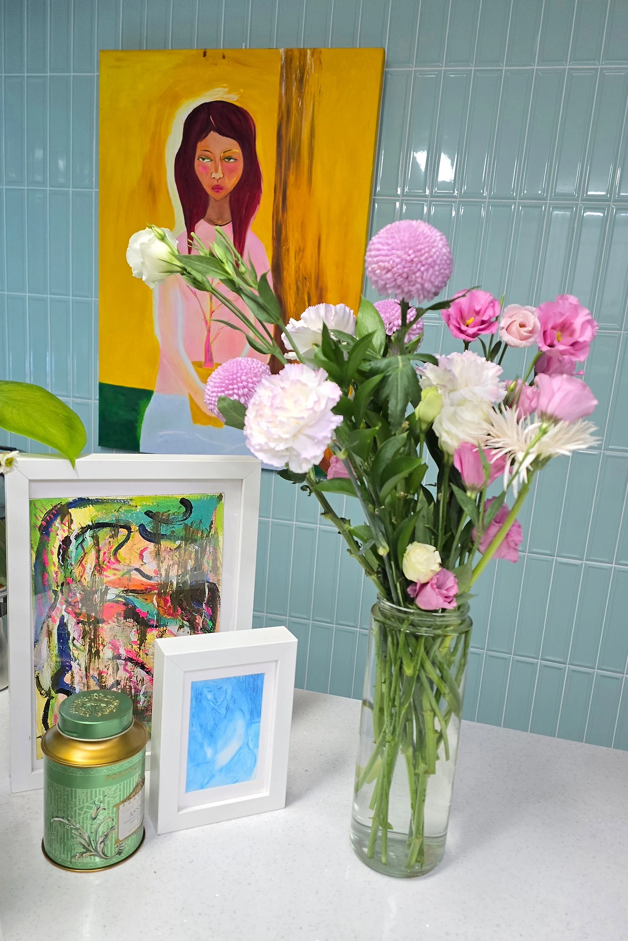 내그림앞에 놓여진 예쁜 꽃이 내 마음을 기쁘게 하며 내려앉은 입꼬리가 슬며시 올라가기 시작했다.