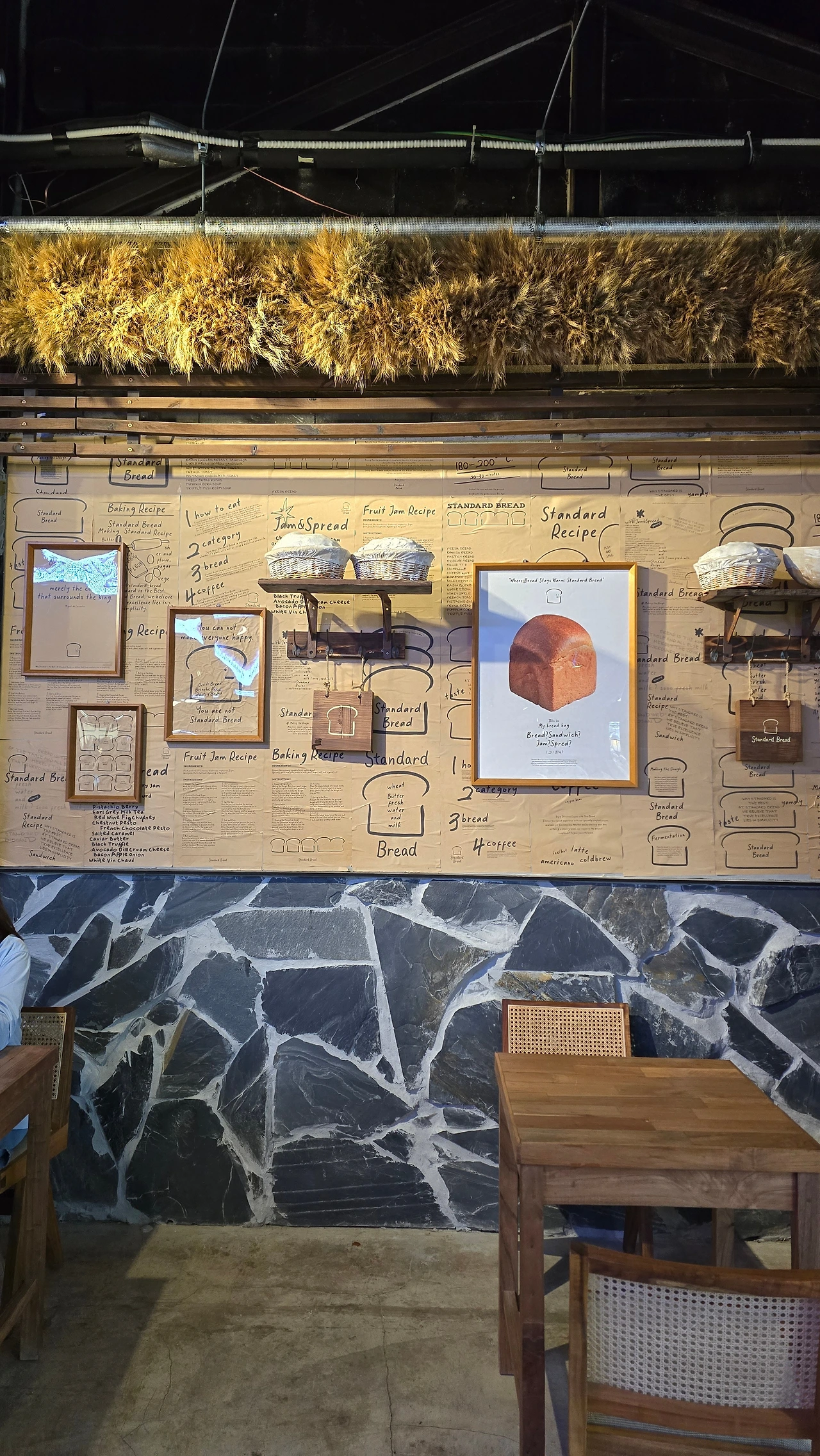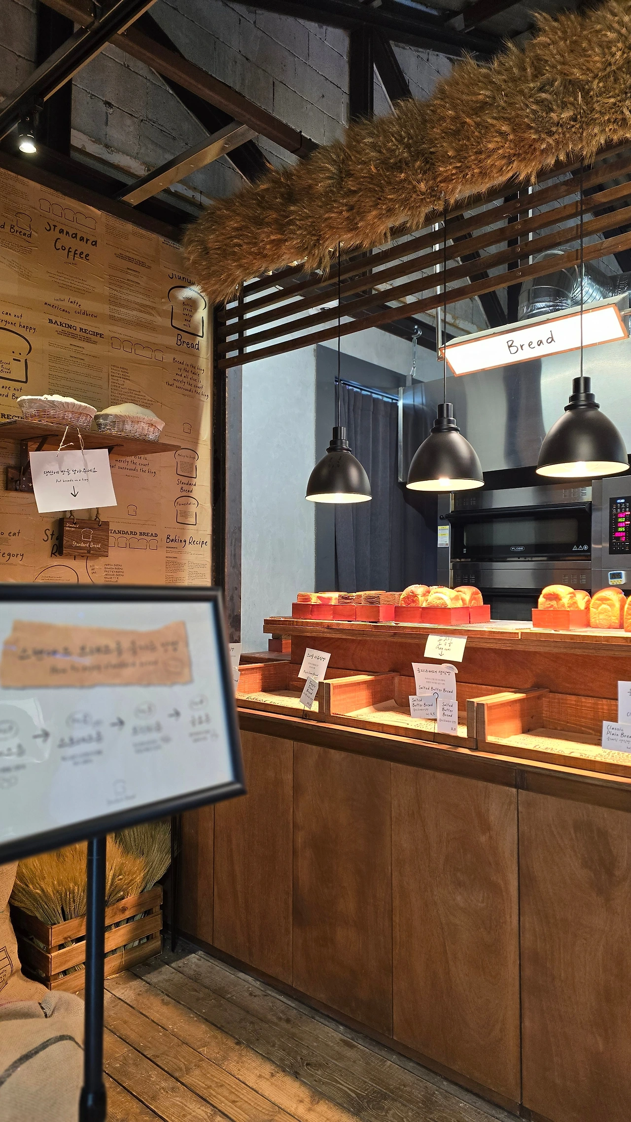 밀가루의 존재를 과감하게 드러내놓은 실내장식은 타까케와 달라 보였다. 하얀가루가 사람의 손에의해 계량되고 주물러져 뜨거운 오븐에 들어가 갈색으로 구워져 구수한 냄새를 풍겨 허기진 사람들의. 식욕을 더욱 강하게 잡아당겨