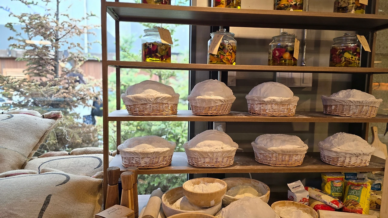 매장안에 들어서니 밀기루 포대가 쌀여진것이 눈에 들어왔고 하얀가루가 바구니에 담겨진 디피된 밀가루 또한 신선함이 느껴졌다.