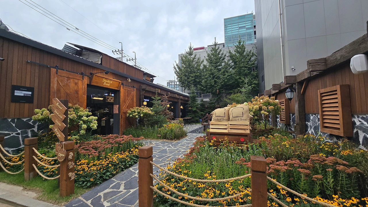 성수동에 있는 스텐다드 빵집에 들어서니 투박하지만 좀 넓은 정원에 여러개의 테이블이 놓여있고 이른시간이지만 사람들이 테이블에 앉아 담소를 나누는 모습이 보기 좋았다.