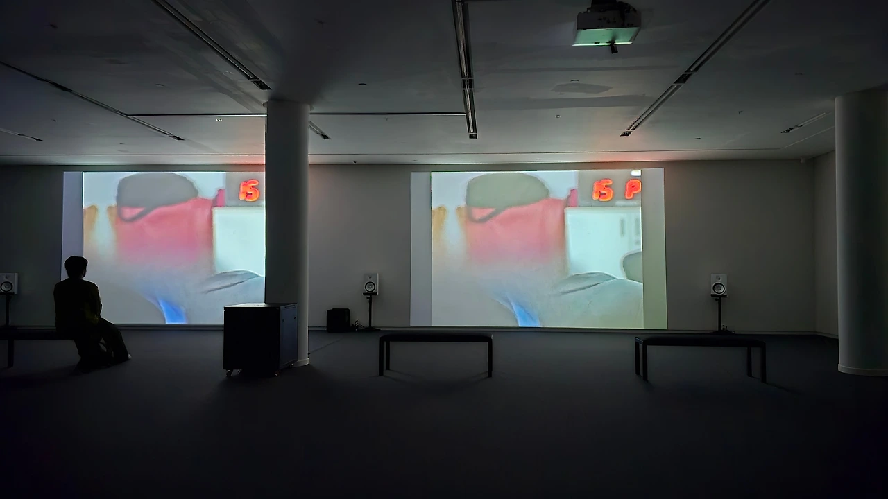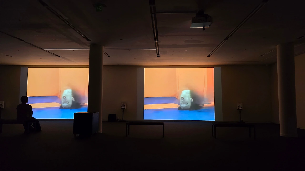레슬링 한판승부의 모습들이 연출되며 긴장되는 소리 그리고 갑자기 화면이 사라지고 깜깜한 상태에서 기다려야 하는 매우 독특한 영상작품이다.