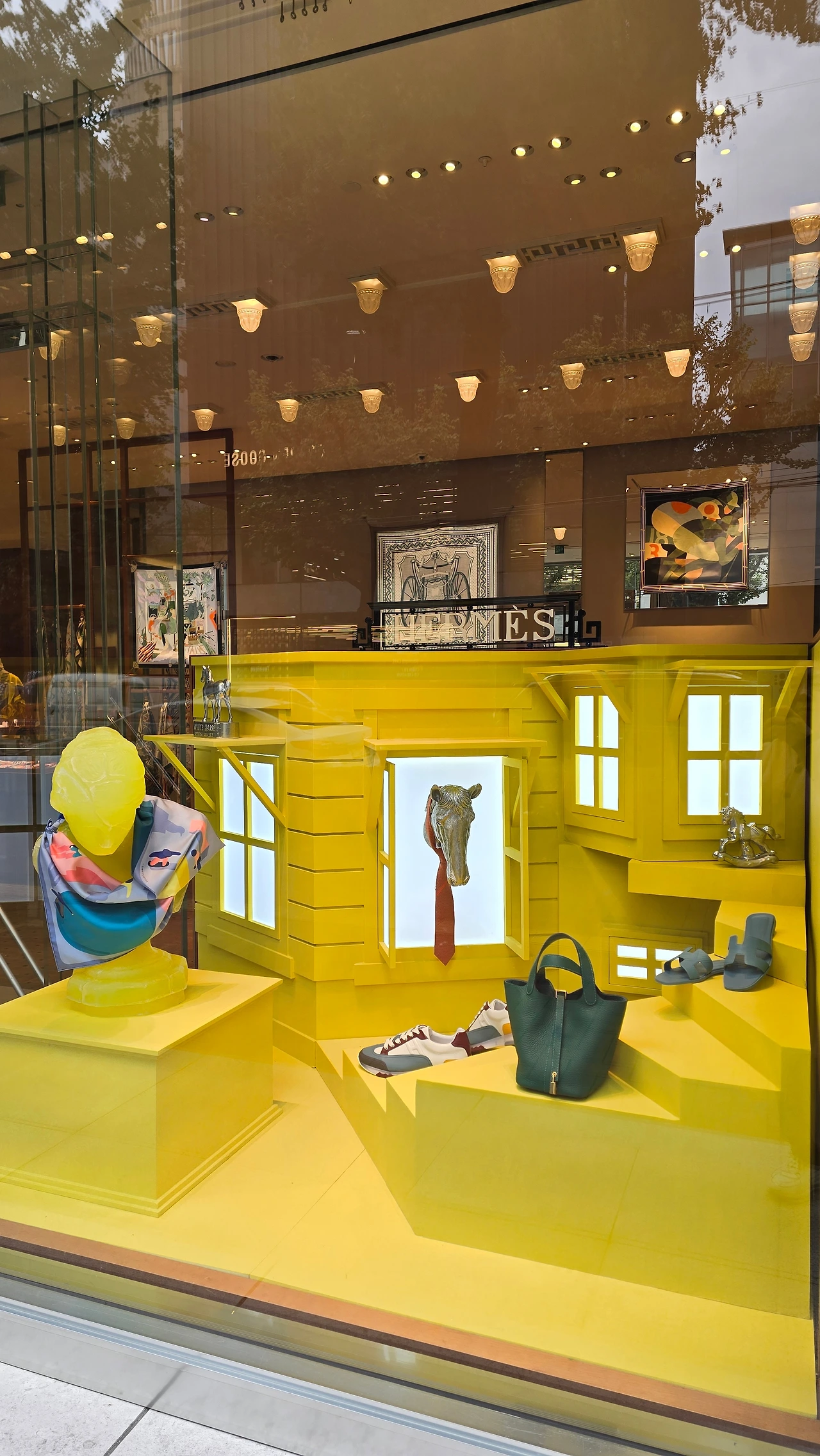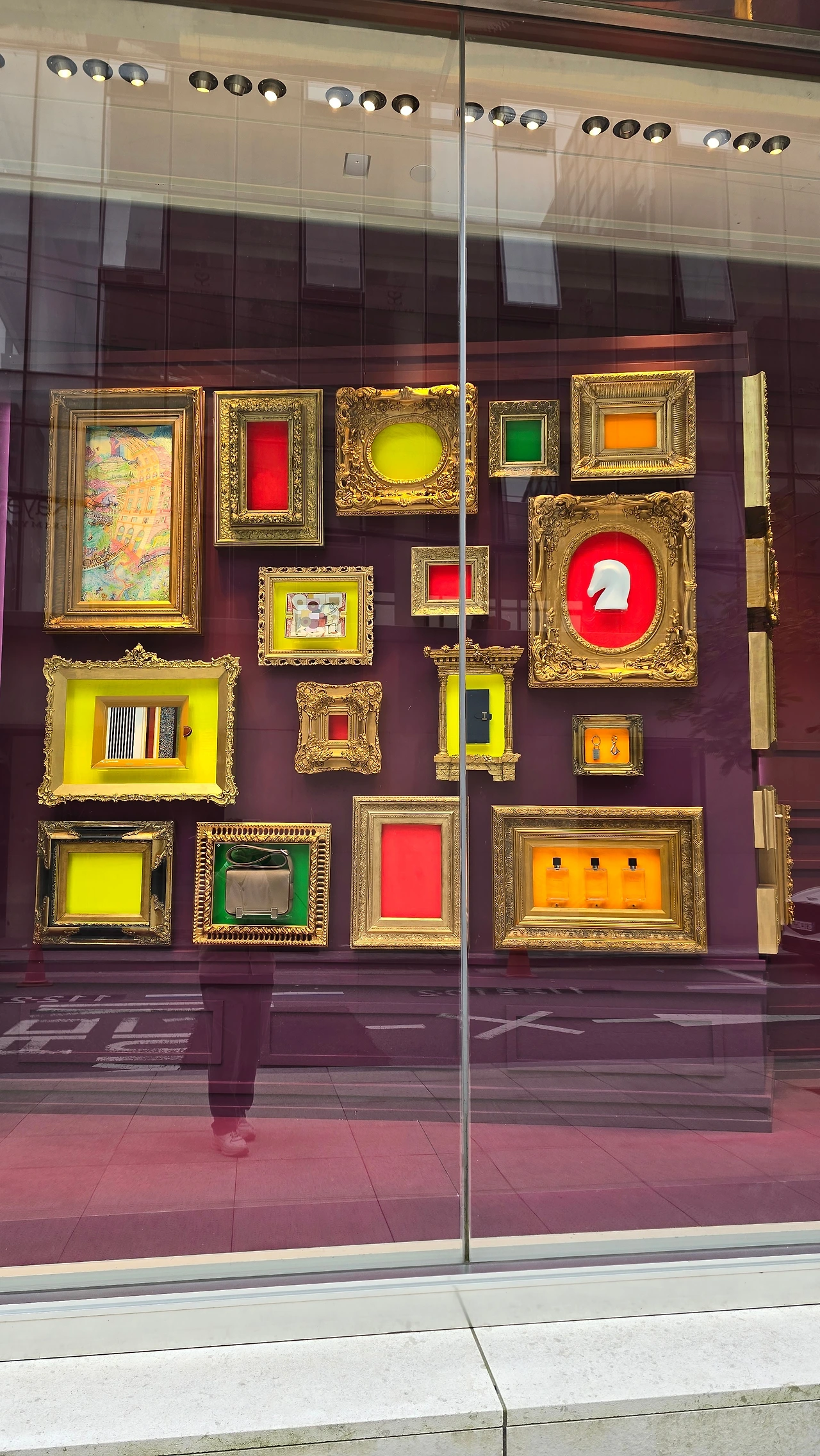 예쁘다. 에르메스 매장 건물 주변 벽면에 그림 사이즈 10호정도로 내어놓은 디피된 창문형 작품들은 건물 벽면을 뺑글뺑글 돌면서 관람하기 참좋았다