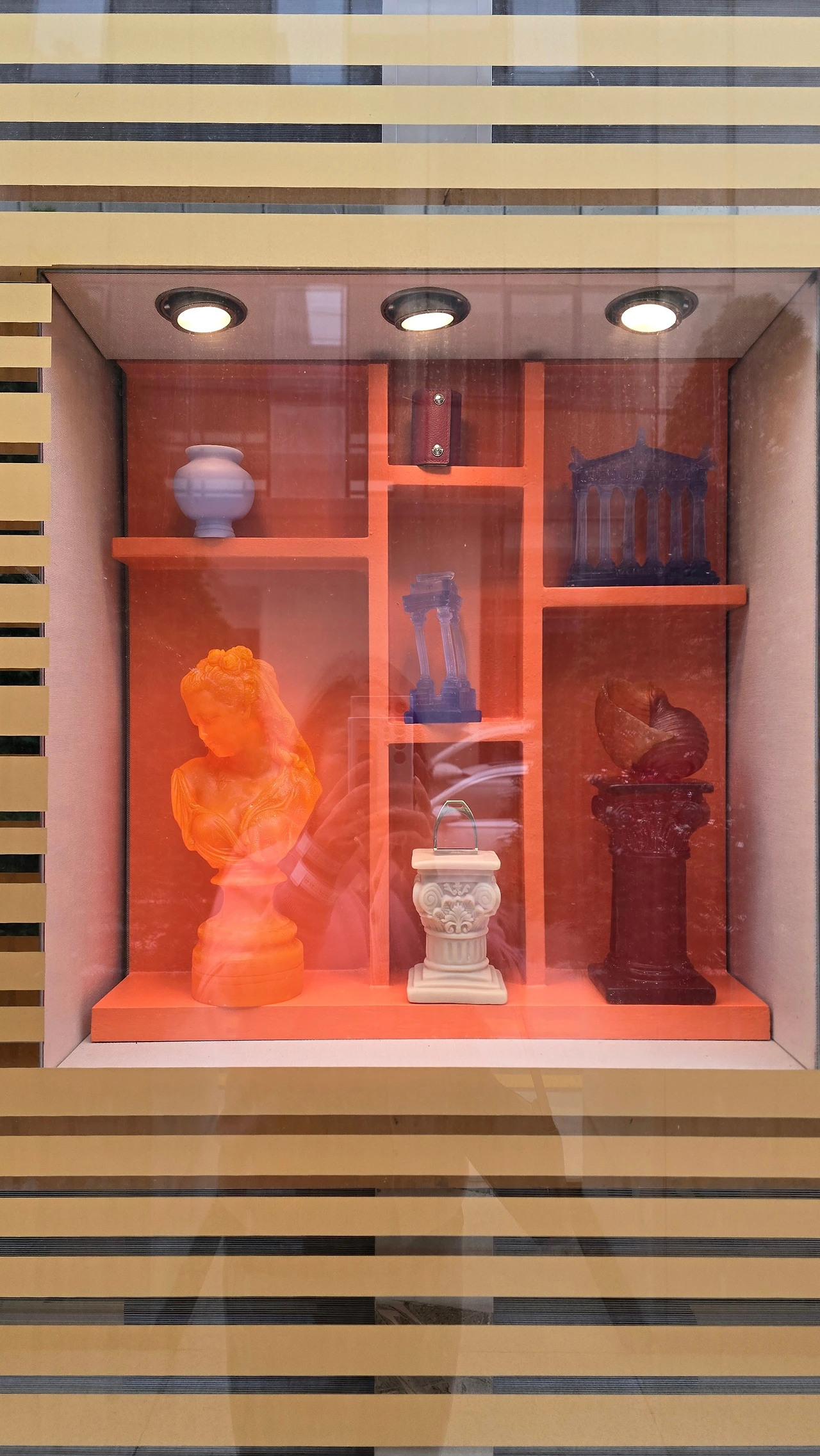 유럽스타일의 어기자기한 조형물들은 에르메스 시그니쳐 컬러가 메인색이 되어 배경을 채우며 보는이를 현혹시키고 있었으며,