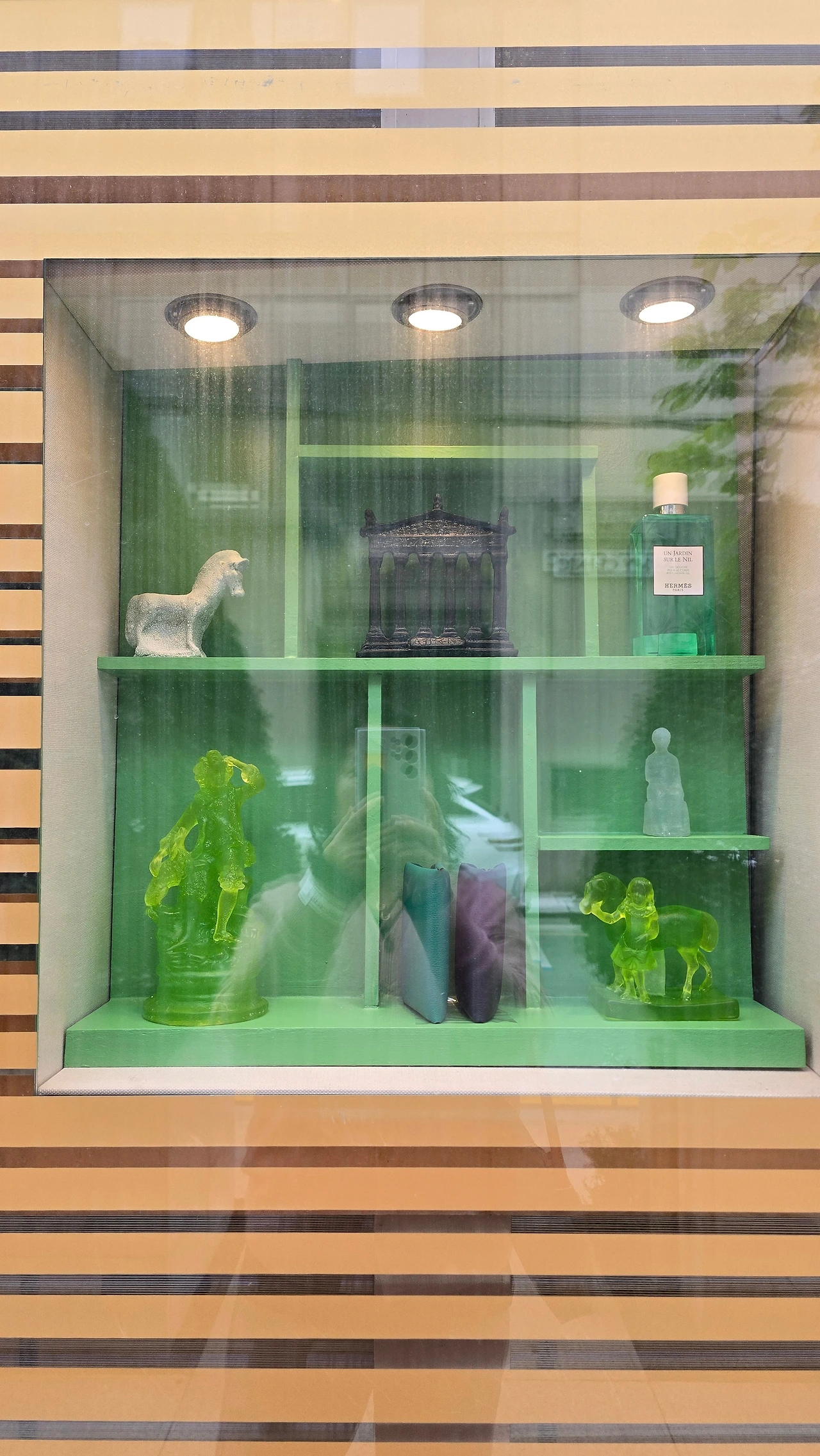 그린컬러의 차분함은 마치 잠시 눈의 피로를 쉬게 해주는것 같아 편안해 보였다. 에르메스 시그니쳐 귀여운 말의 형상은 여기저기 갖가지 컬로로 디피되어 있다