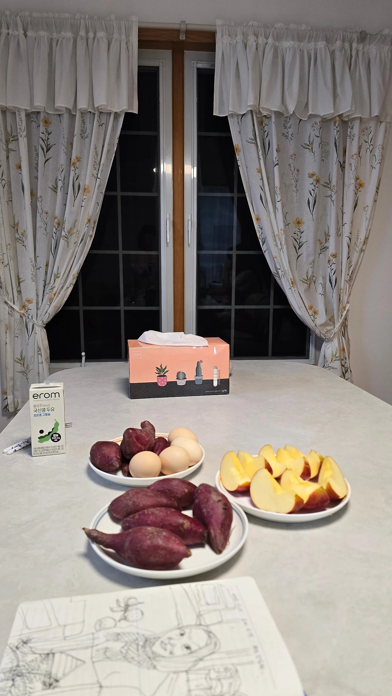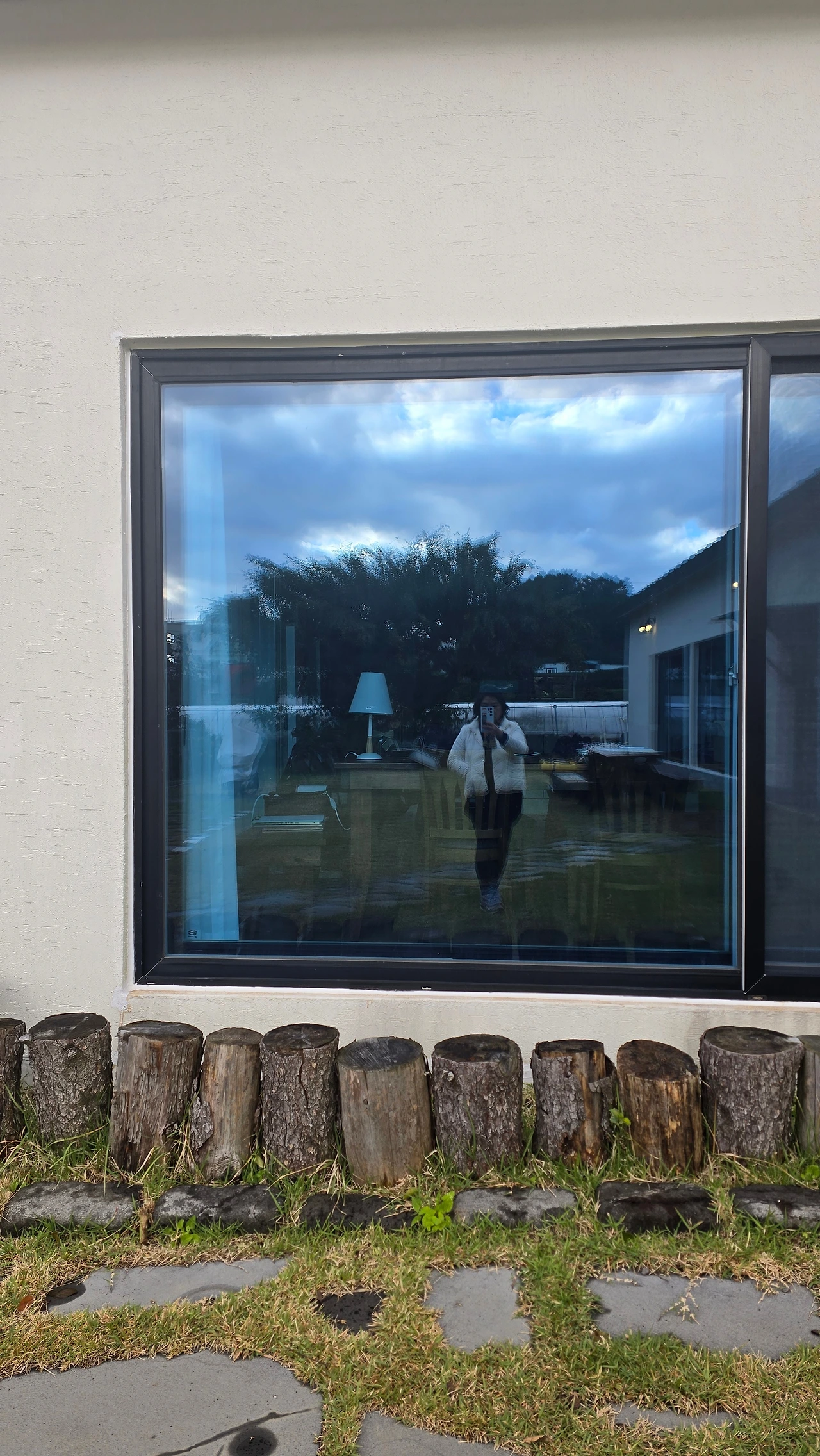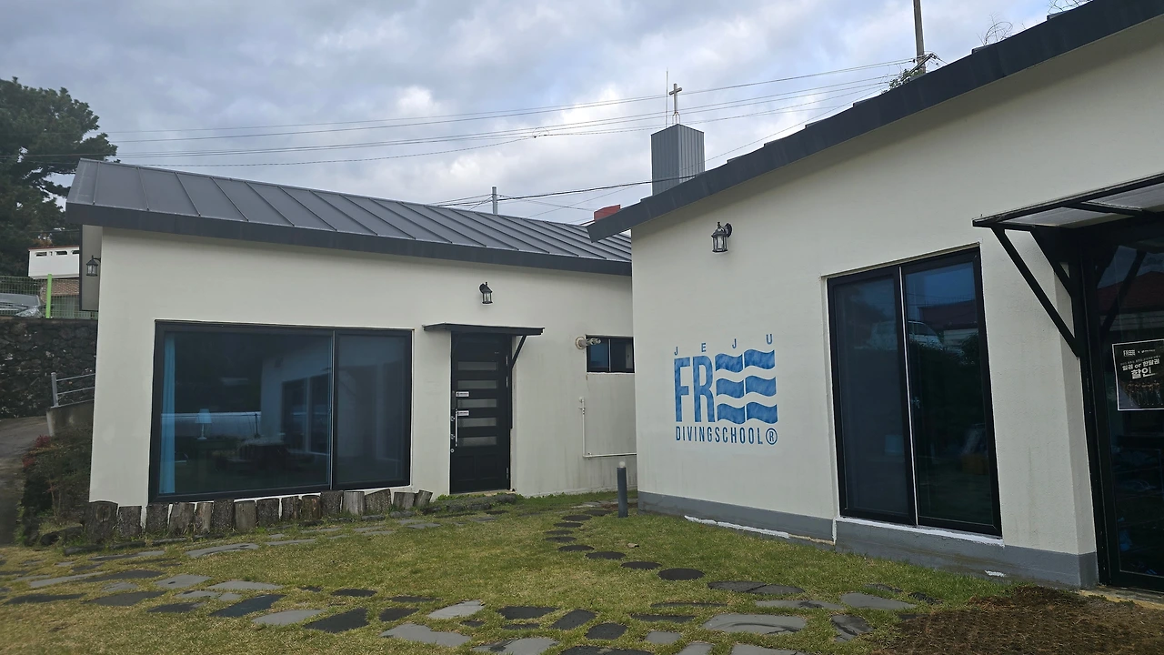 테라스에 있는 노랑색 접혀진 그늘막우산과 흐린날씨의 잿빛 하늘이 묘하게 어울리는 제주의 첫숙박 아침을 맞았었다. 상큼한 비온날의 대지 내음을 맡으며 하루의 문을 열었다.