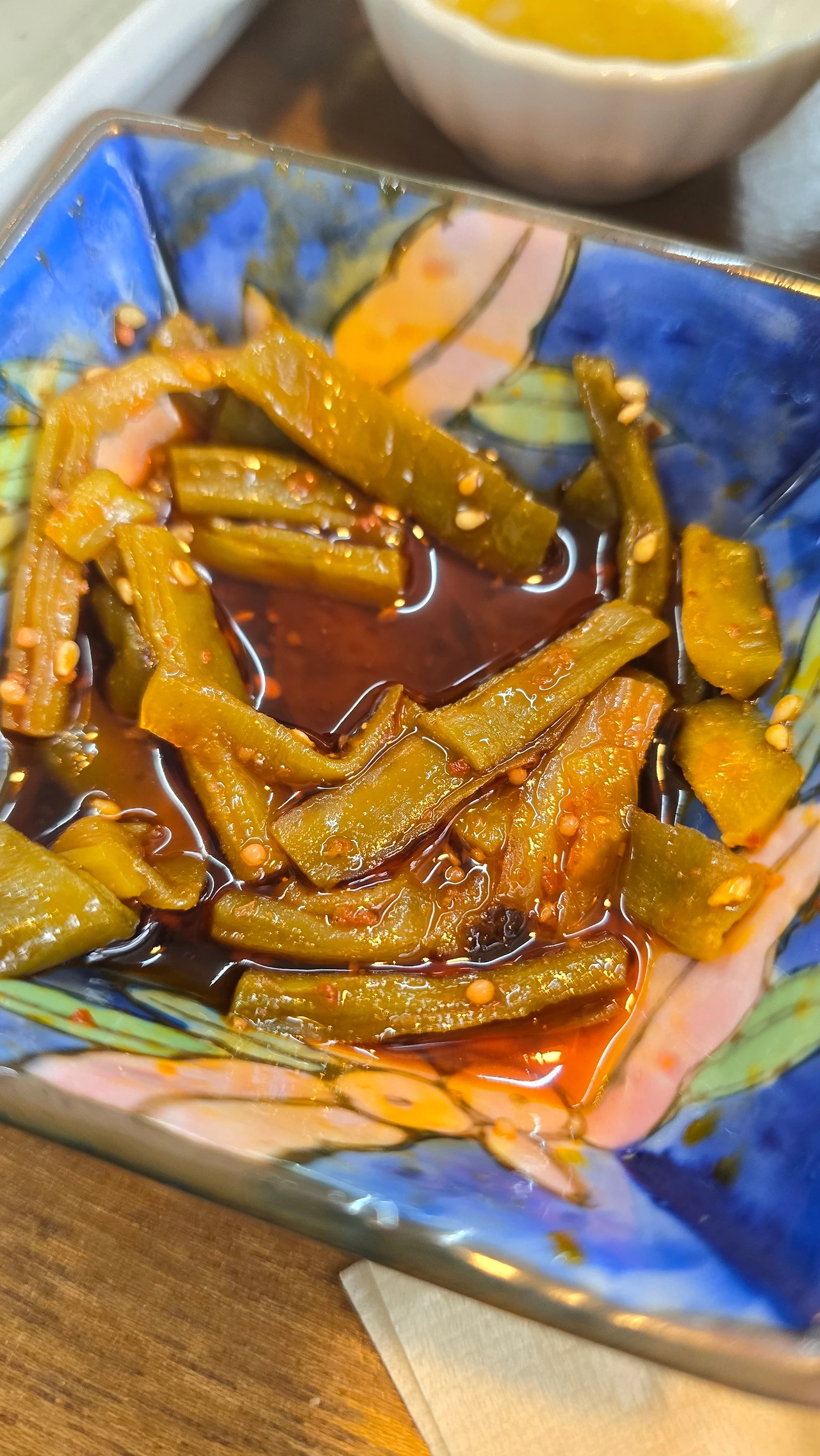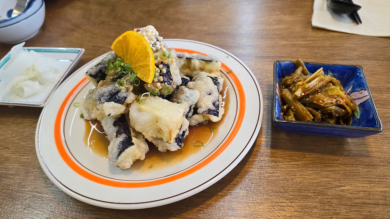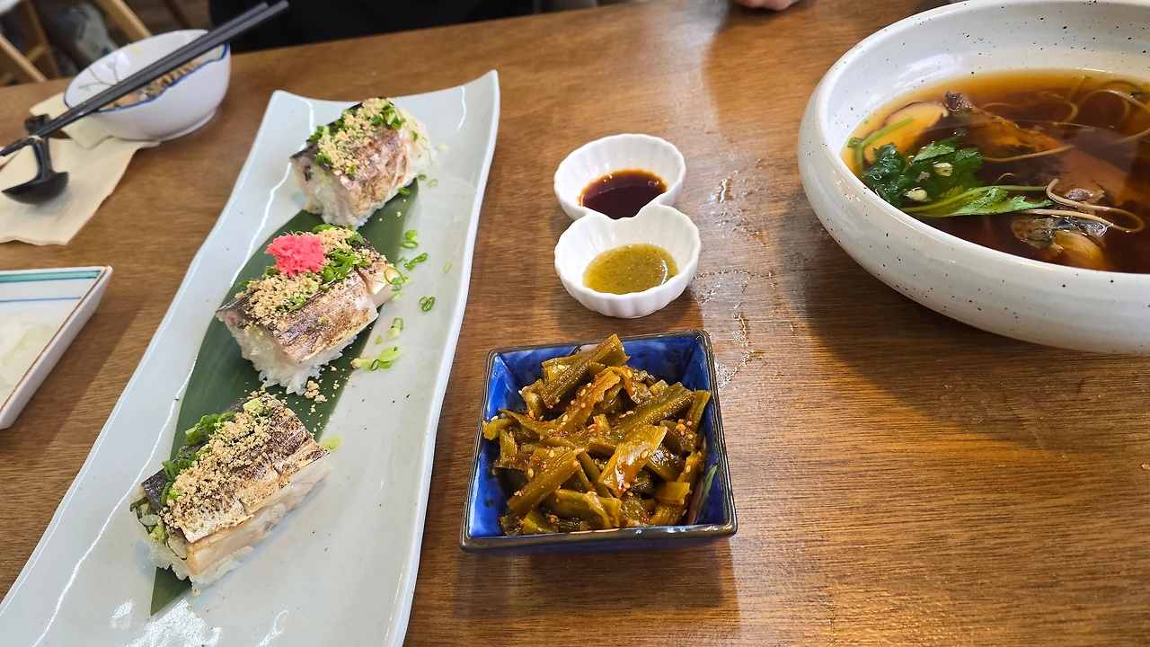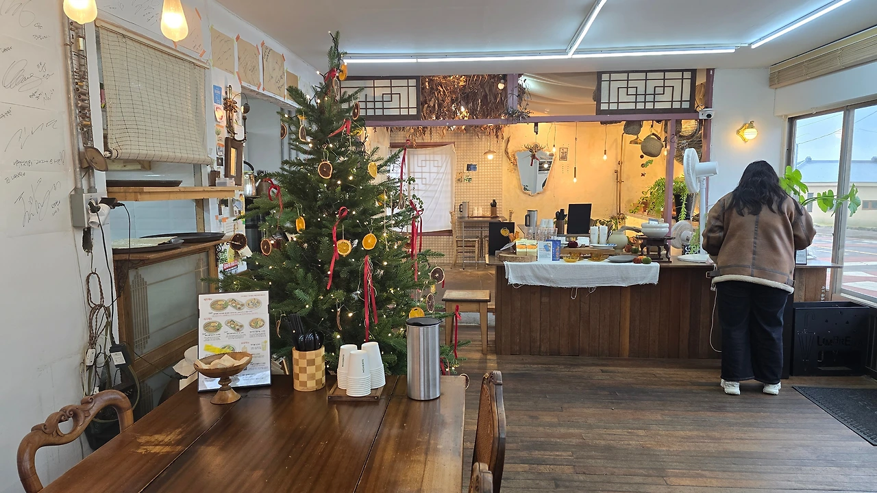 예쁜 감굴 트리가 눈에 들어왔고, 일식이라는 기분이 들었던 식당의 인테리어는 옛집을 약간 틀어 보수한 공간으로 있었던것을 그대로 살리고 데코레이션으로 치장한 깔끔한 공간이였다.