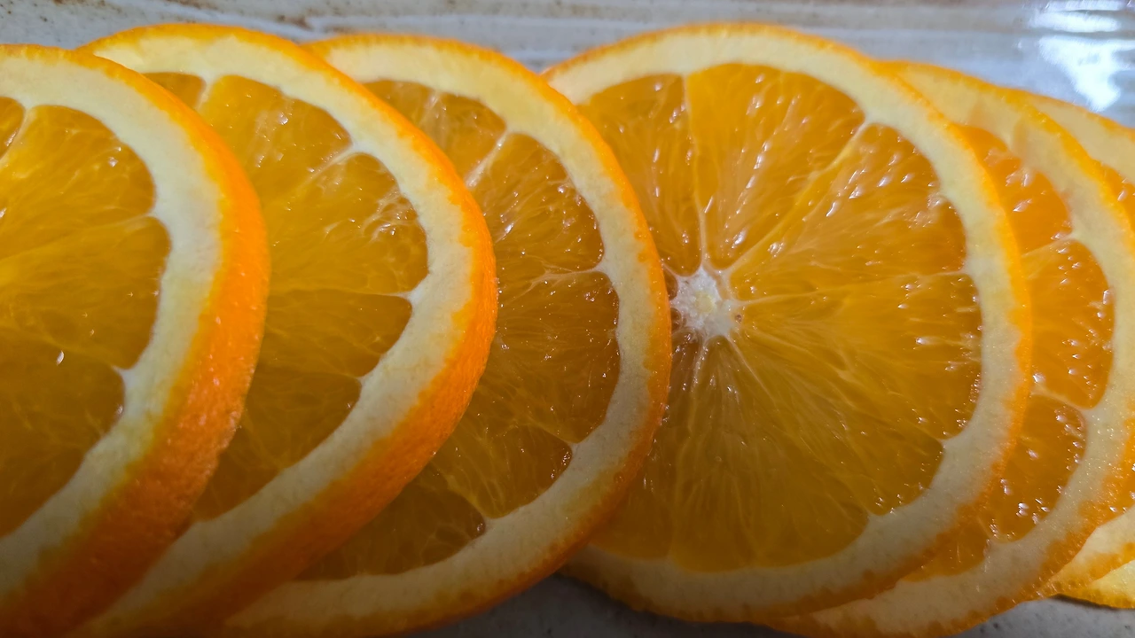 냉장고에서 시원한 오렌지를 꺼내들고 그 오렌지의 상큼한향기와 맛을