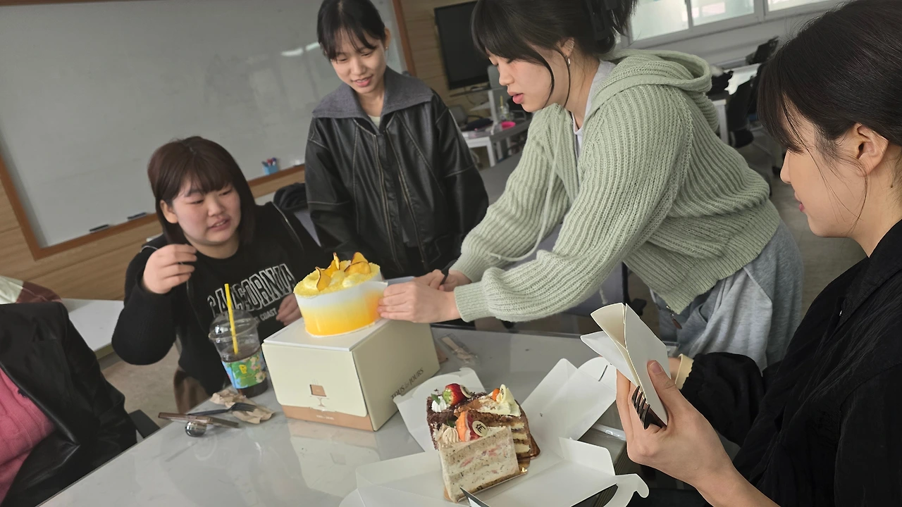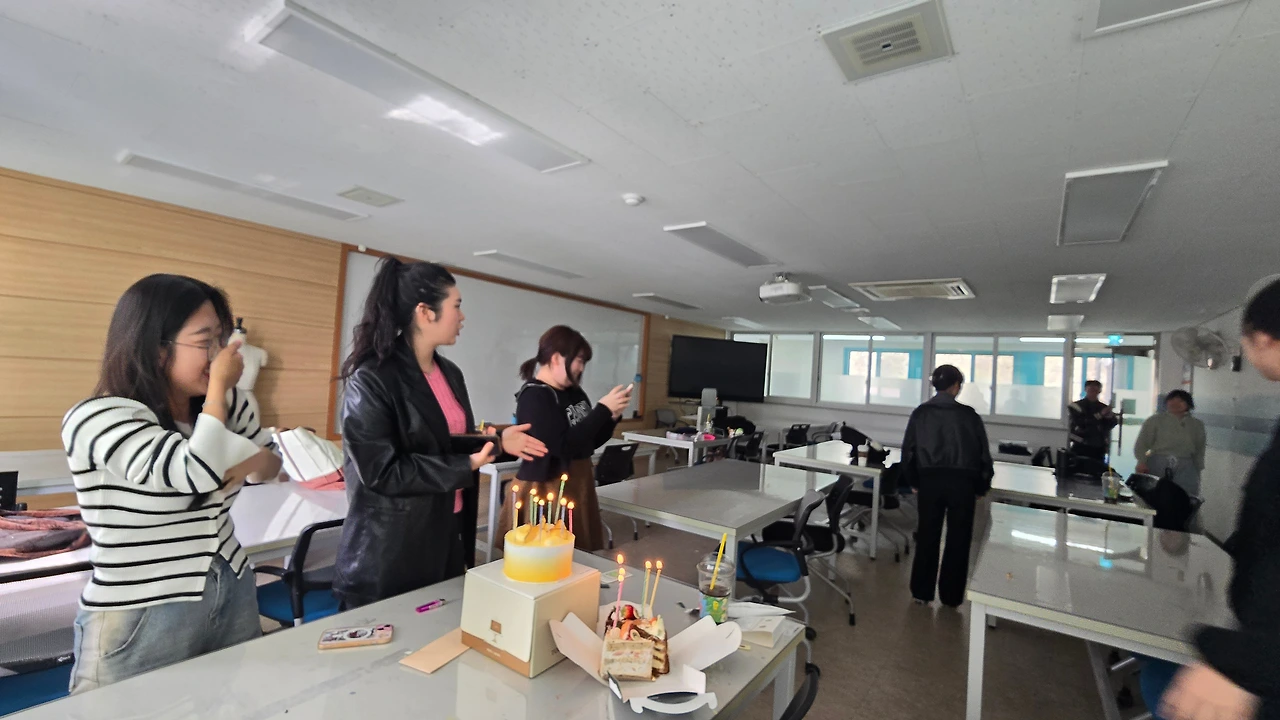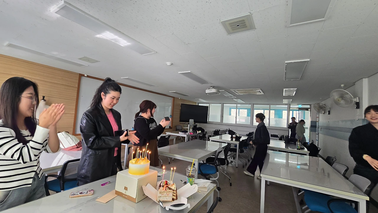 점심식사후 강의실에서 깜짝 생파케잌 이벤트를 우리들끼리 소소하게 진행했다. 주인공이 참 즐거워하는 모습을 바라보면서 "앗 이것이 사회팸이구나"하는 생각?