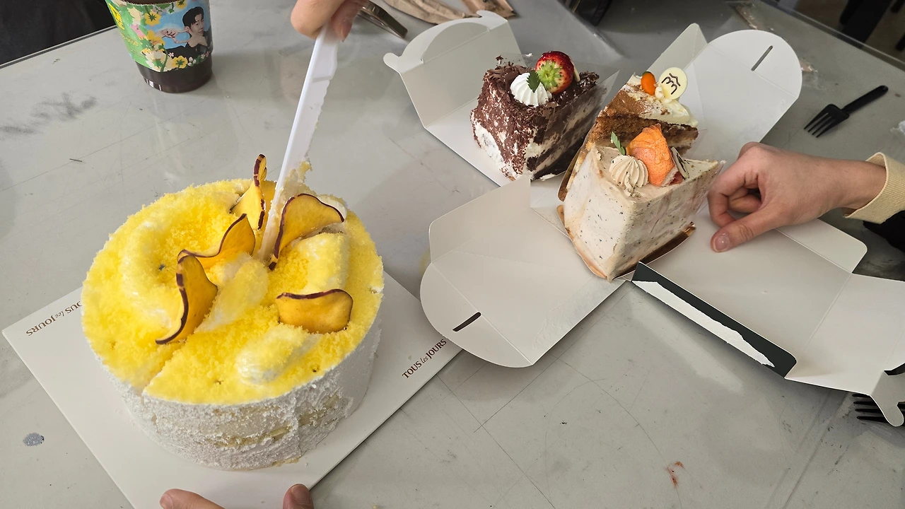 다행히 학교마치고 늦은시간 케잌가게에. 몇개 남은 케잌을 사서 집으로 가져와 다음날 학교에 가져갔다.