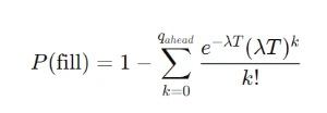 여기서 V_T는 구간 T 동안 발생한 체결량이고 Q_ahead는 내 앞에 있는 물량이다. 단순 포아송 가정에서는