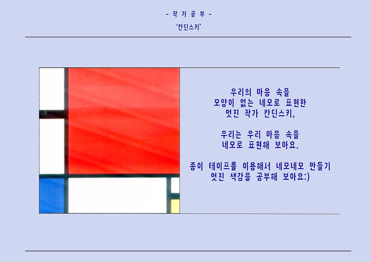 추상화 '대상의 모티브를 포기하고 순수하게 색과 형태를 통해서만 작용하는 미술로서, 우리 주변 세...