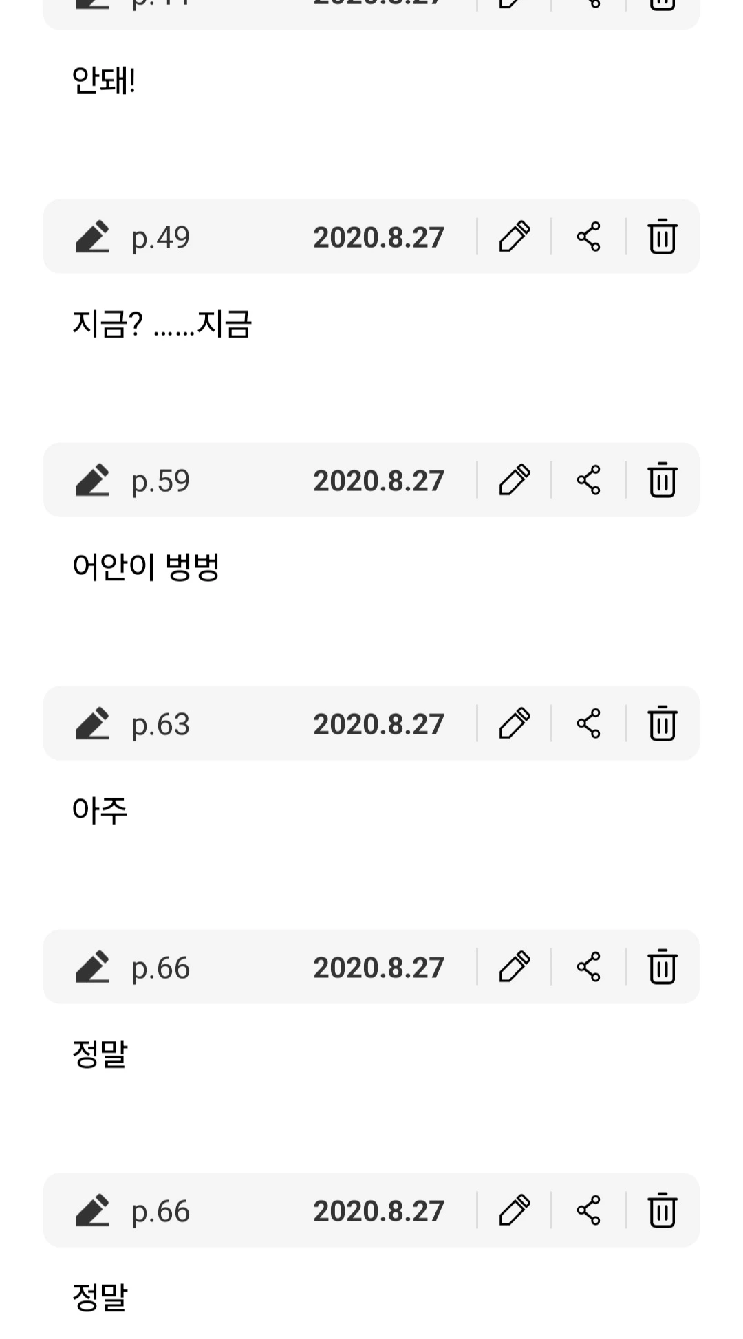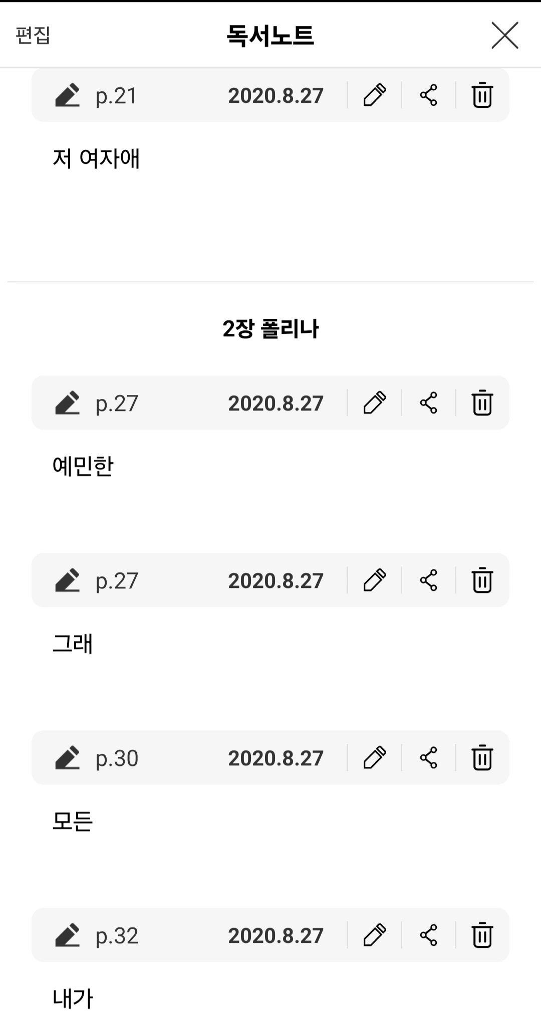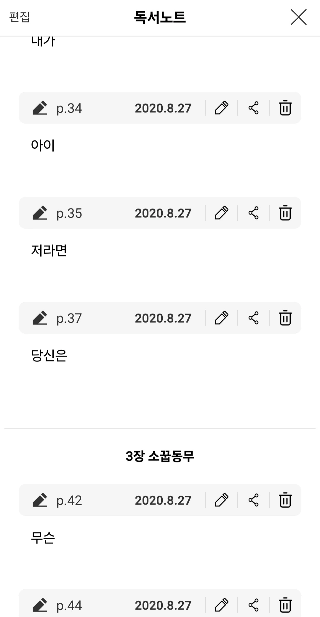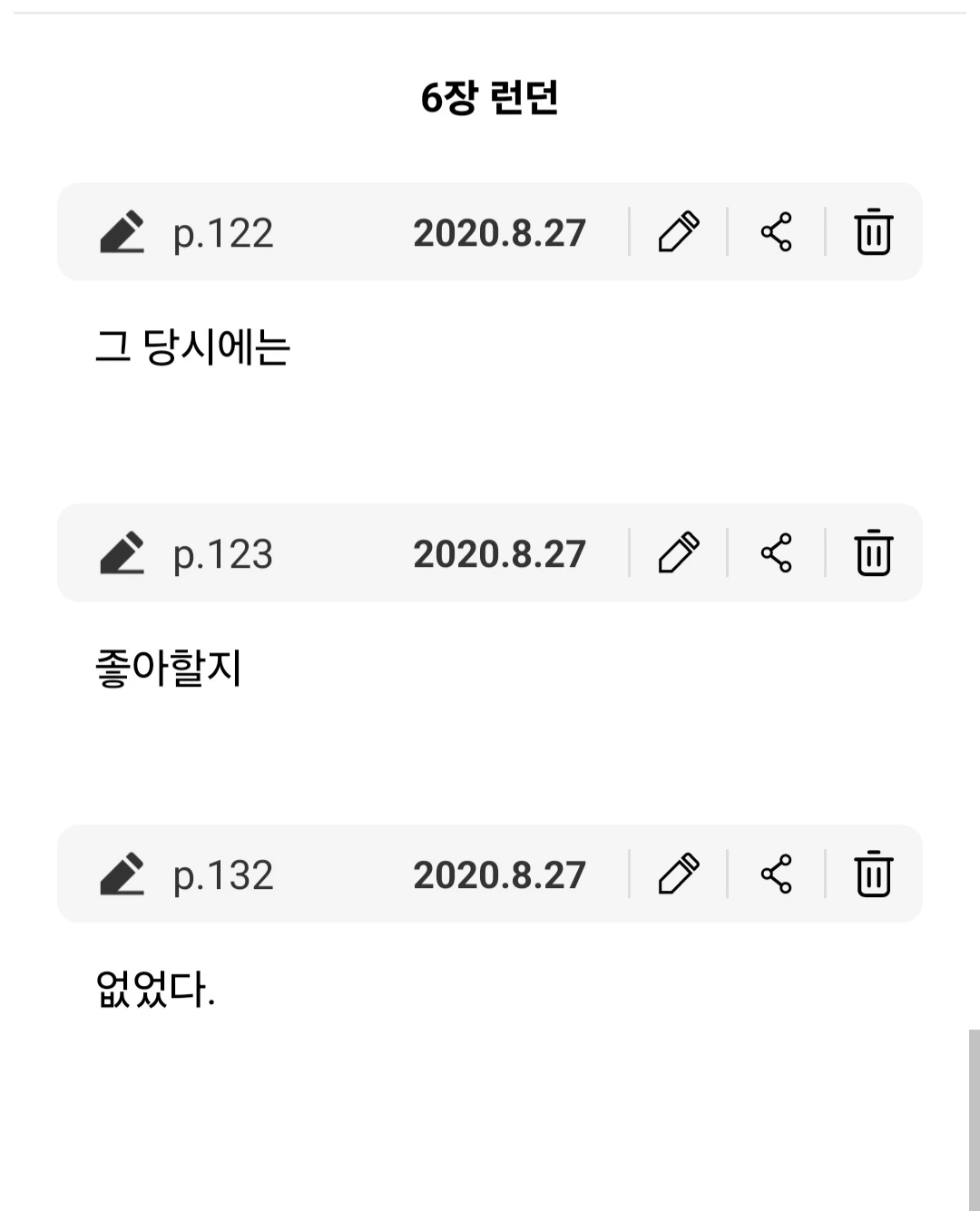 에 단어가 하나씩 보이더래.