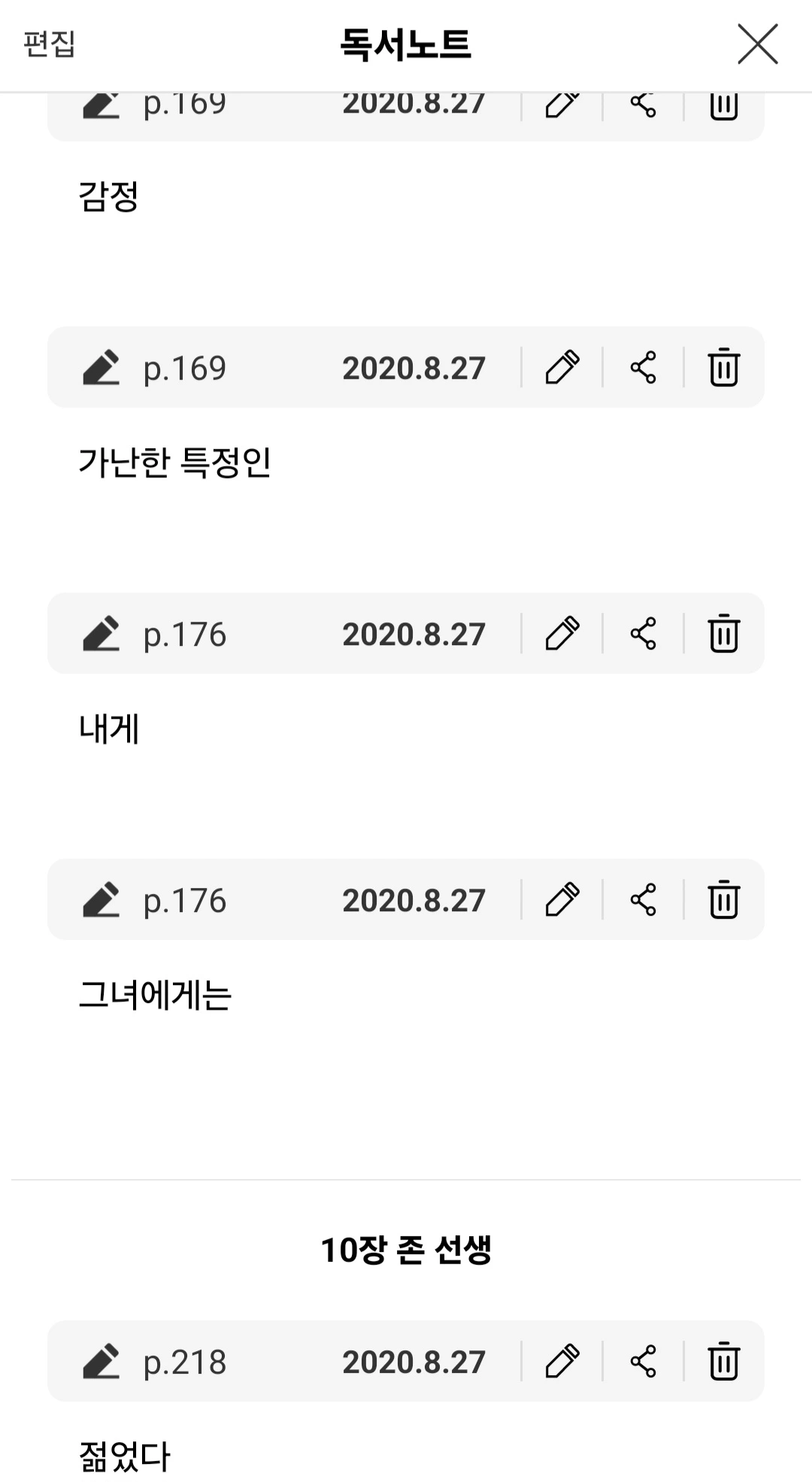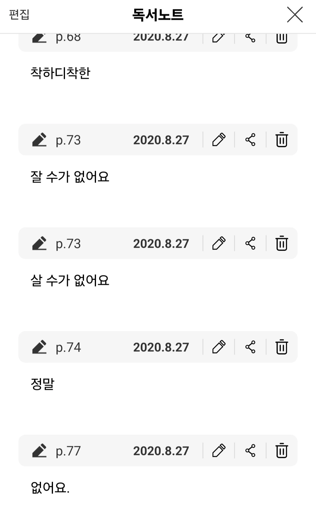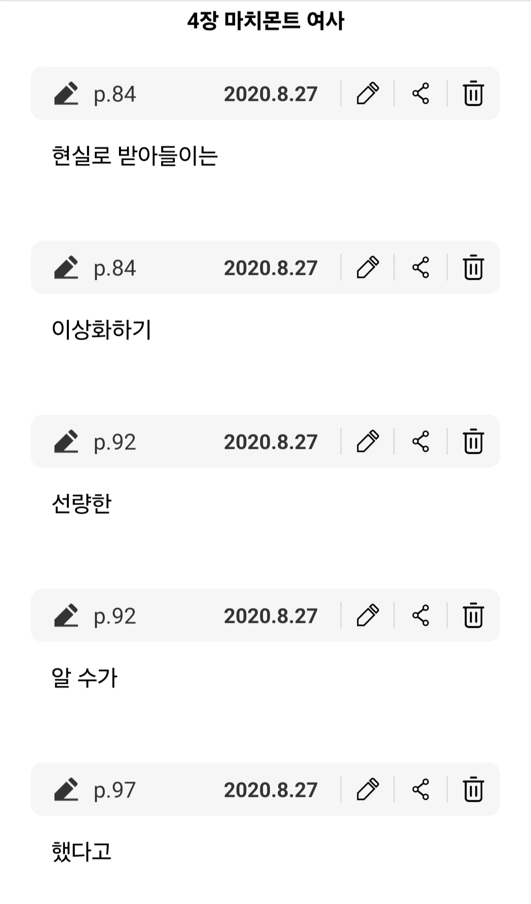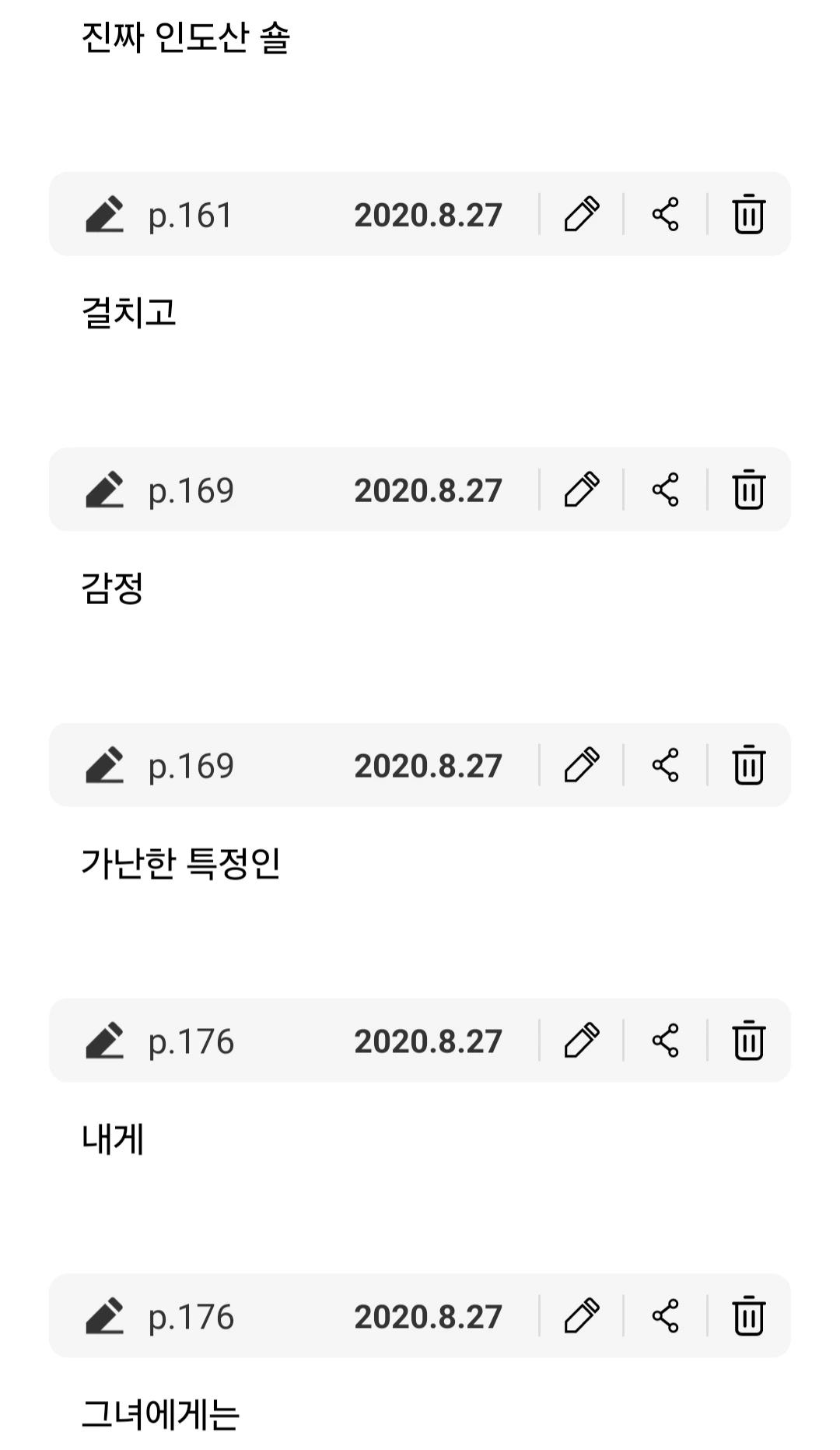 에 단어가 하나씩 보이더래.