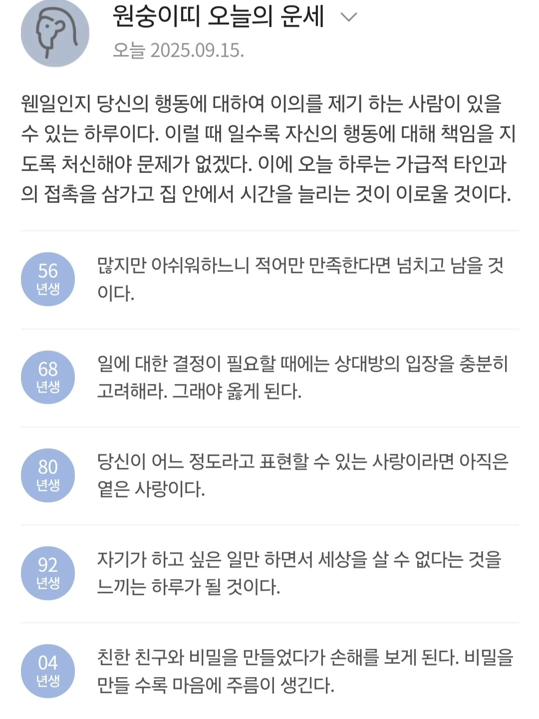 2. 어떠한 노력이 필요하다는 오늘의 운세.