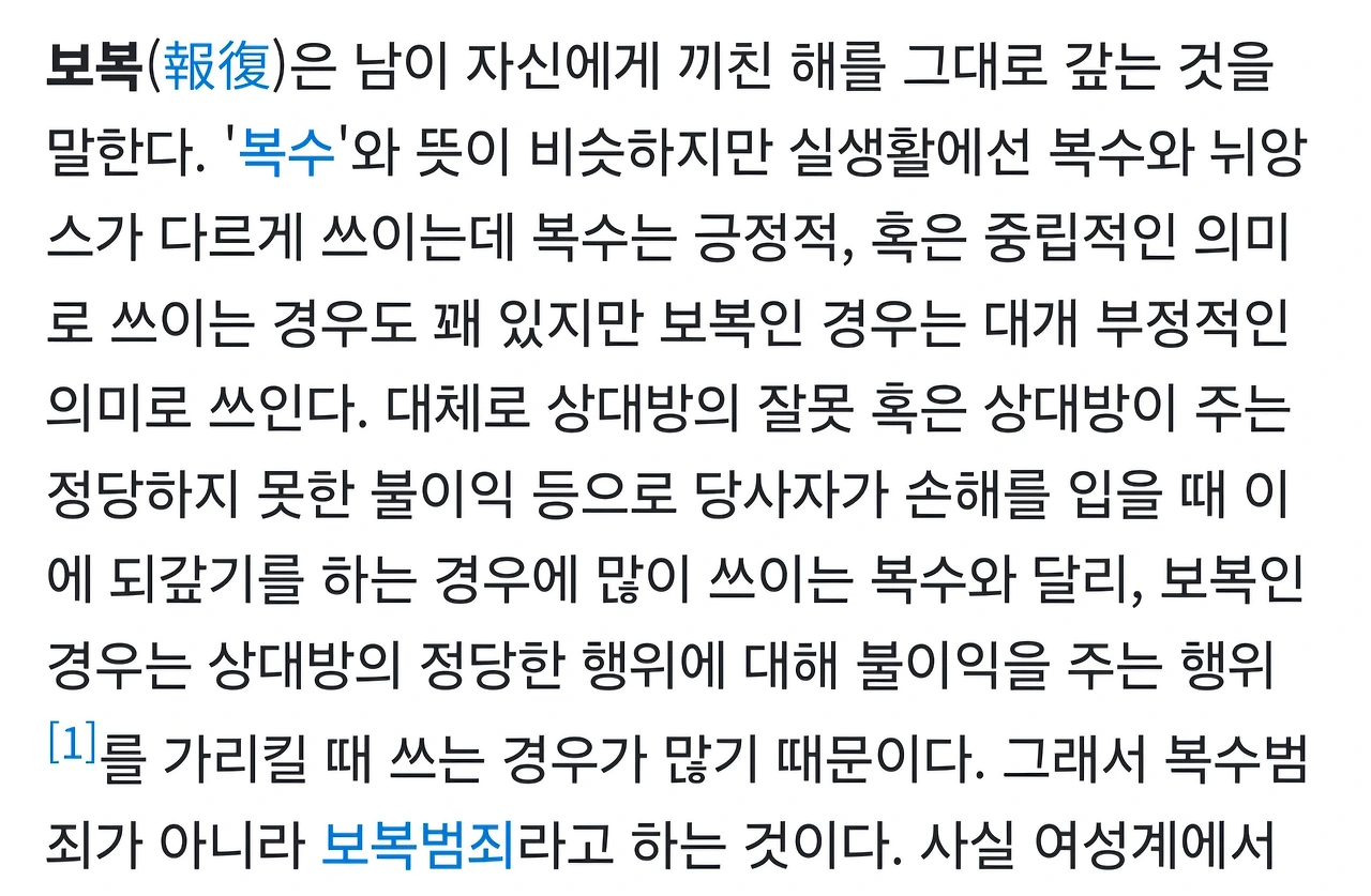 3.보복 : 남이 자신에게 끼친 해를 그대로 갚는 것을