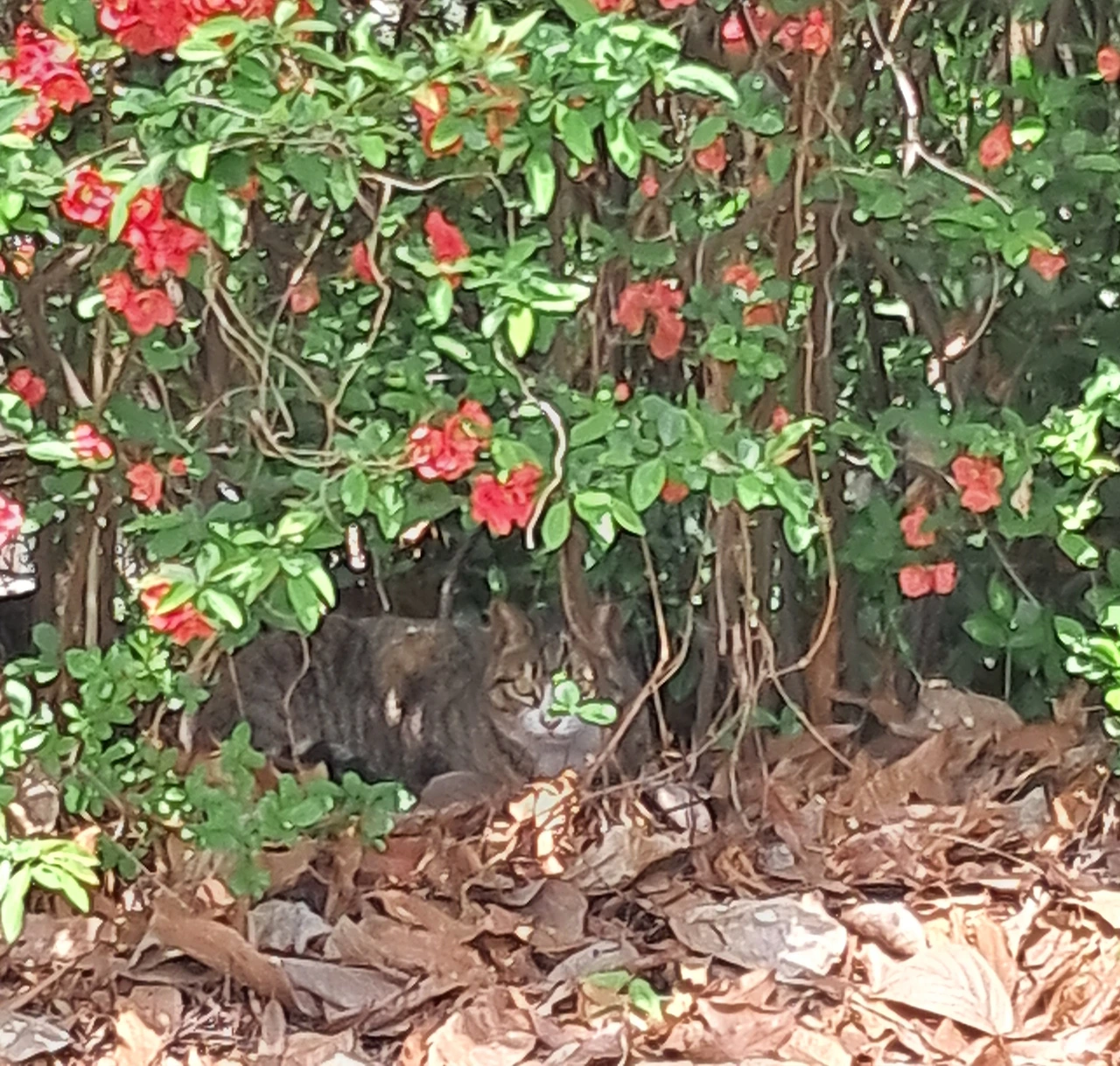 1. 꽃나무 사이에 누워있는 고양이 두마리를 보았다.