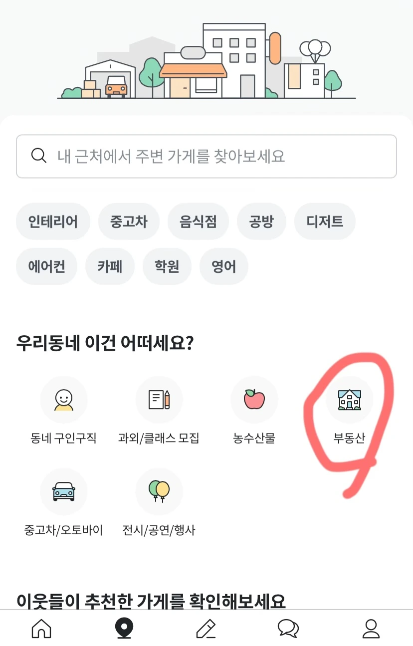 당근마켓에서 내 근처 > 부동산 코너로 들어가면 정보를 찾을 수 있어요. 저희는 당근마켓도 굉장히 유용했어요! 맘에 드는 매물이 있으면 바로 채팅을 해서 문의할 수 있으니 약속잡기도 편리했어요.